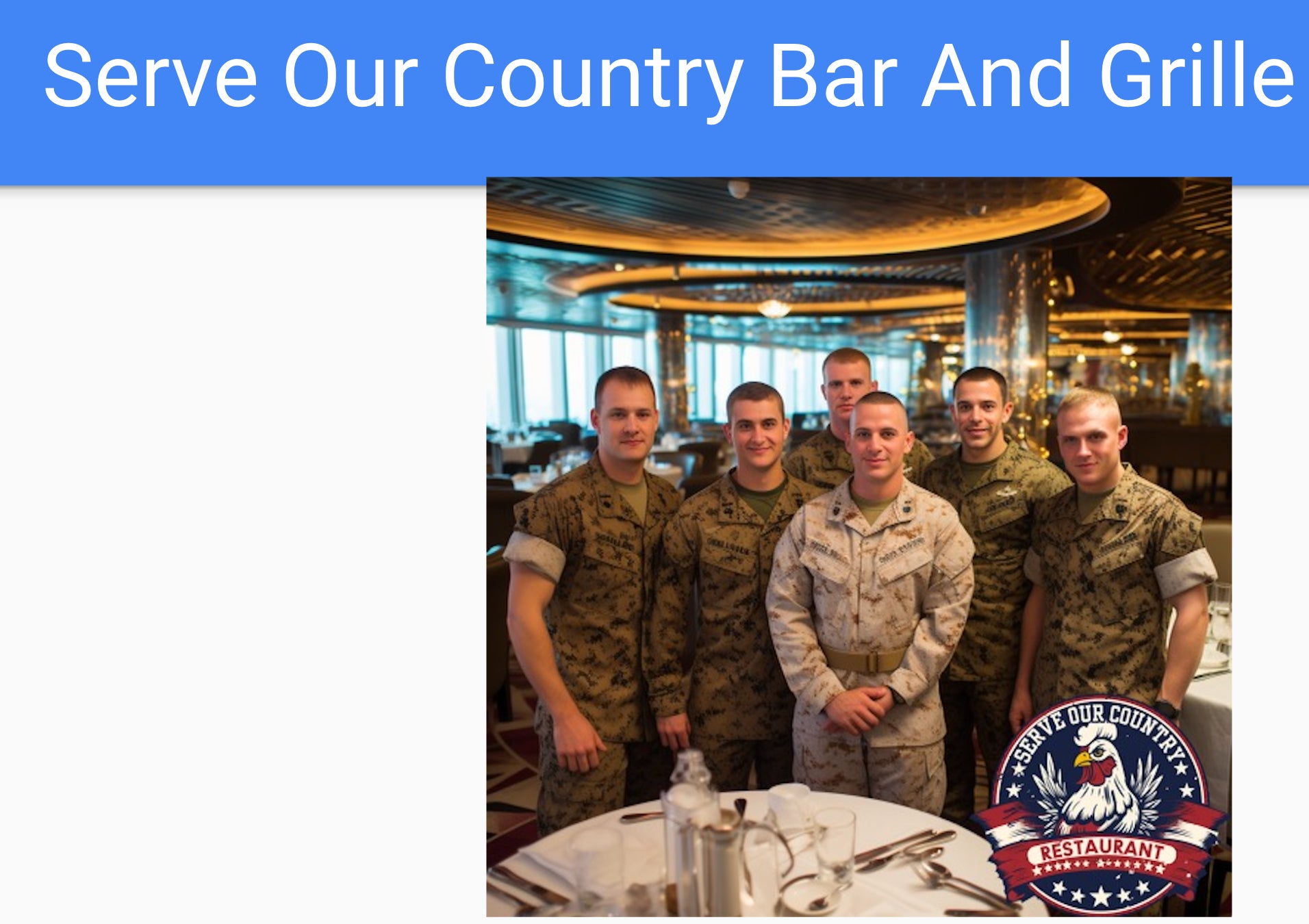 Veteran unemployment is a big issue in this country. Well I'm here to solve it. At Serve Your Country Bar And Grille, the entire staff is ex-military. Chefs, waiters, waitresses, bus boys, you name it. It gives veterans jobs and more importantly, it's a brilliant pun!