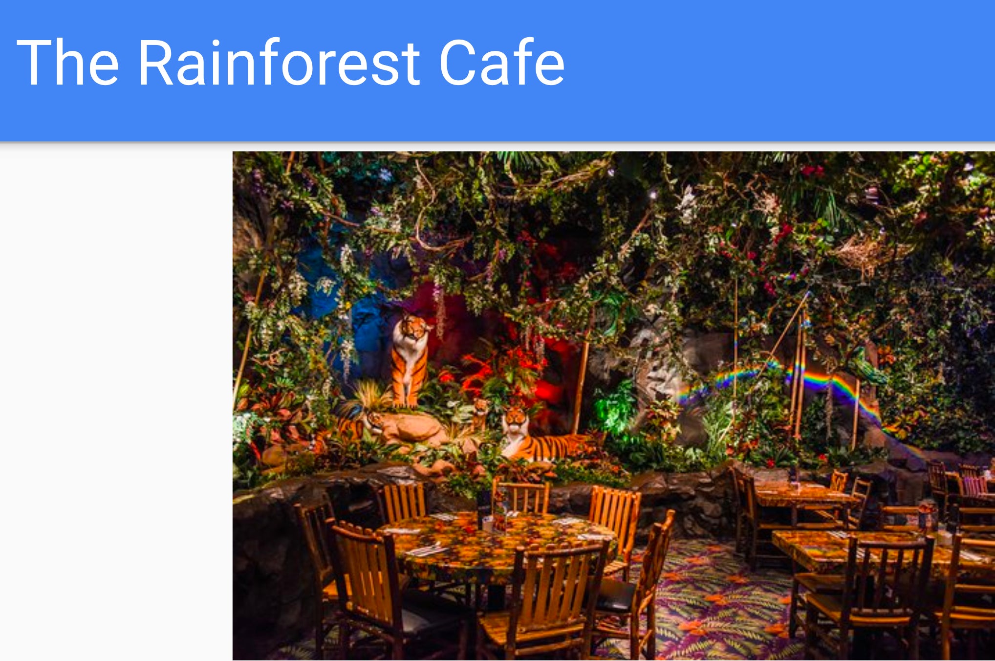 Alright hear me out. A restaurant with a rainforest theme. It looks like a rainforest inside. It sounds like a rainforest. It feels like a rainforest. There's rainforest themed menu items. Fake animals. Maybe every 30 minutes some loud storm noises go off? I think this one really has legs.