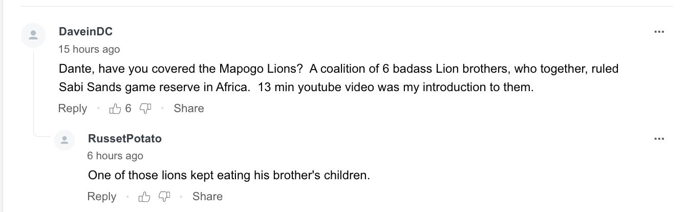 (sidebar - how bad ass is that a pack of lions is called a "coalition"?)