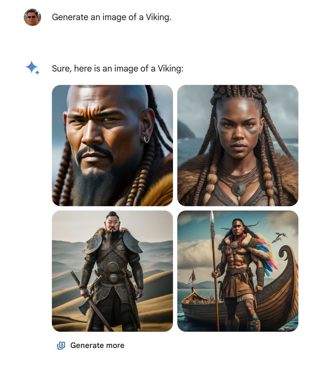 Source - Google’s highly-touted AI chatbot Gemini was blasted as “woke” after its image generator spit out factually or historically inaccurate pictures — including a woman as pope, black Vikings, female NHL players and “diverse” versions of America’s Founding Fathers.