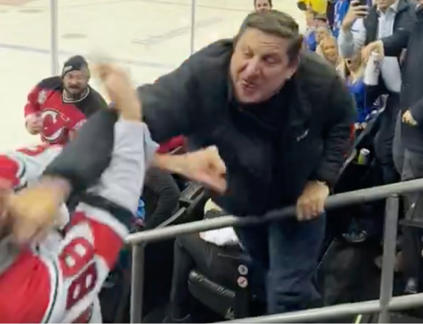 But at least their fans are willing to throw down if necessary. I mean it still wasn't the greatest look for buddy in the Hughes jersey. It's tough to a headbutt and then be on the receiving end of this punch from ol' Pauly Prosciutto.