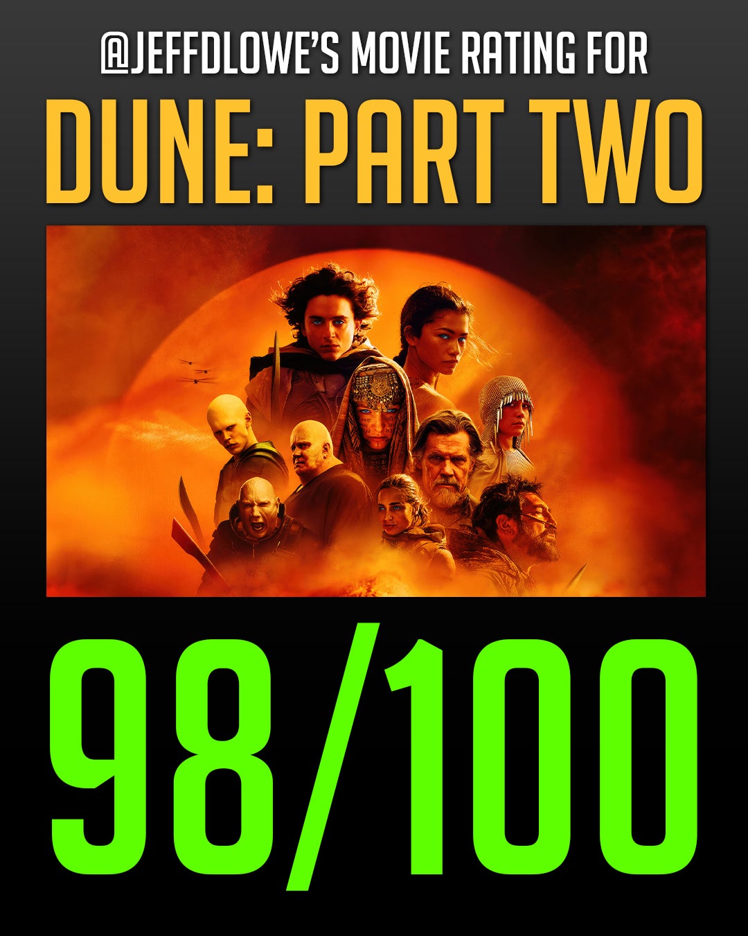 'DUNE: PART TWO' (98/100) - Every now and then a movie comes along that feels transcendent for its genre. With 'DUNE: PART TWO', we get a movie that not only transcends its genre but transcends the movie-going experience. This movie is simply one of the greatest sci-fi movies and epics ever released and has a scope & scale that will leave your jaw on the floor. The conclusion of this legendary two-part story needs to be seen as soon as possible and on the biggest screen you can find.