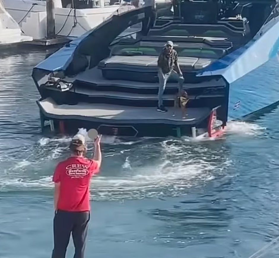 Source - The owner of San Diego's $4.5 million Lamborghini yacht has been caught on video seemingly threatening to kill a dock worker and flashing his genitals after he was refused parking.