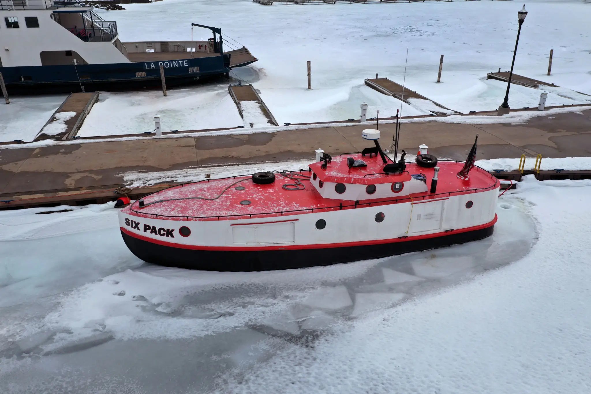 Ice Angel is an ice boat that is used in Wisconsin's Madeline Island and transports people to Bayfield when the water has become ice. The air propellers can glide over ice.
