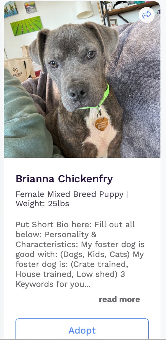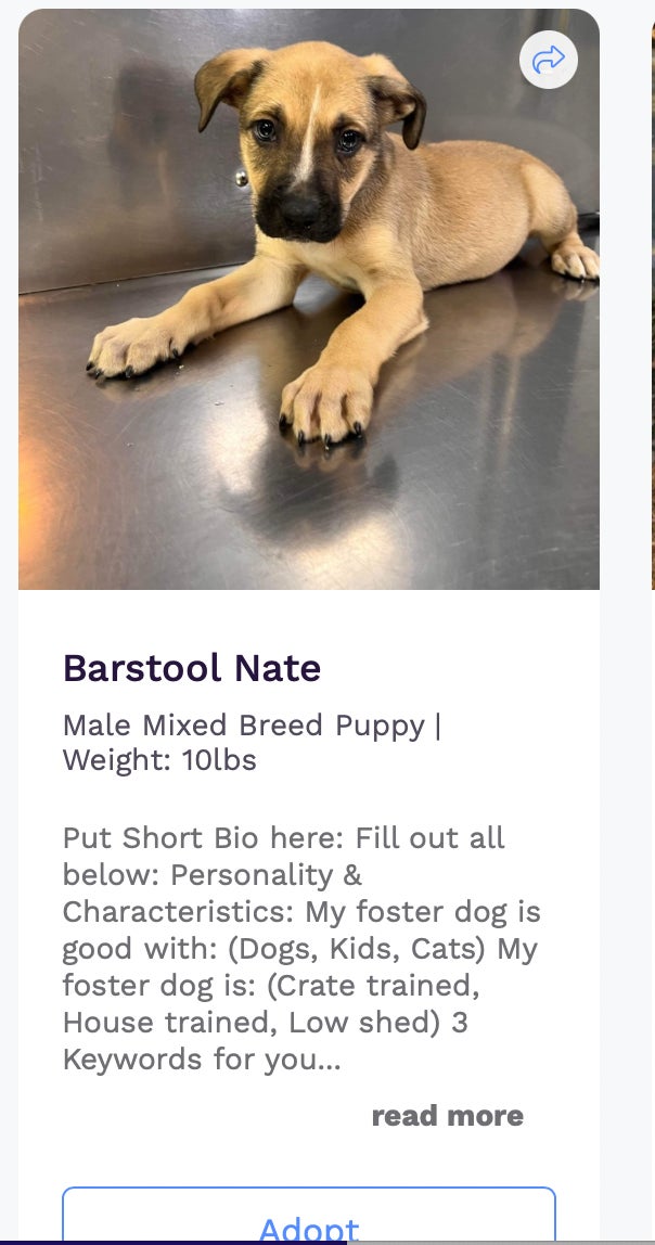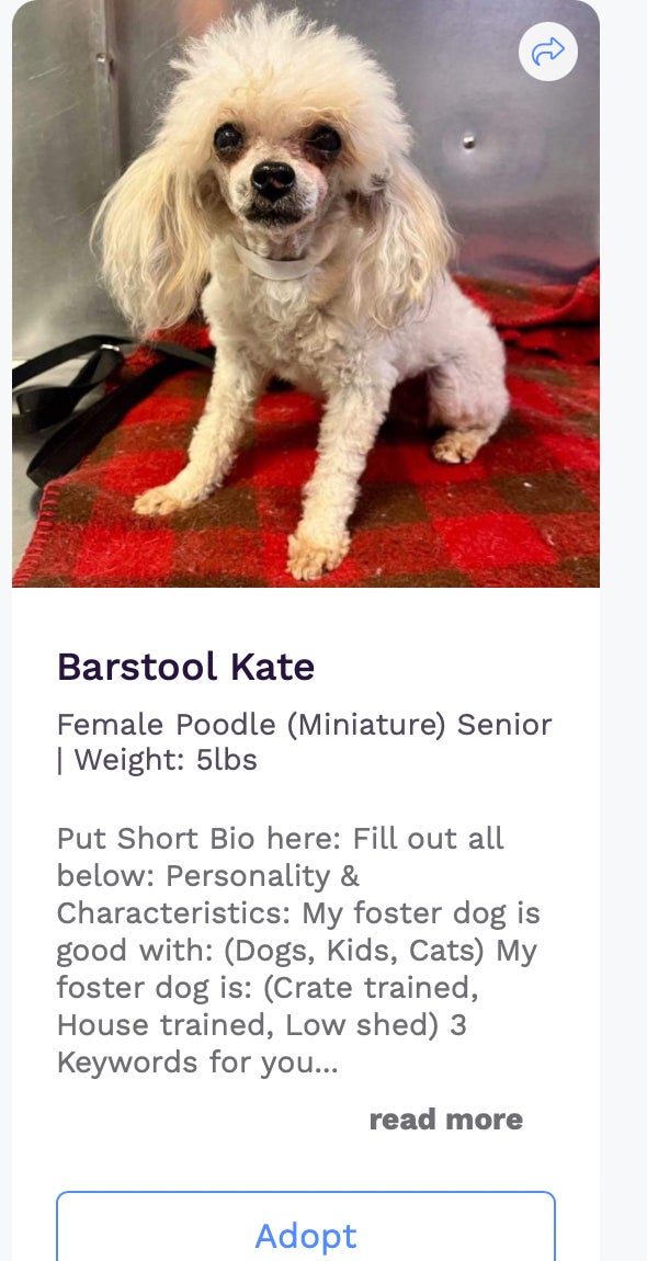 Having a sandwich or a sex position named after me would be neat, but a sweet lil pup?! How cool! I couldn't wait to post her on social media hoping maybe someone would want Barstool Kate in their forever home.