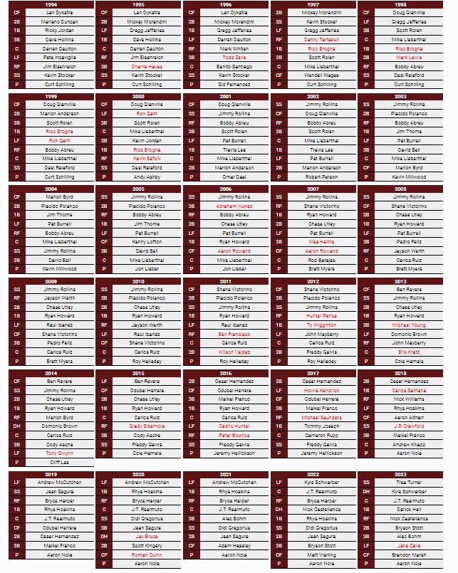 And now we honor an Barstool Philly tradition we've been doing for the past decade or so…how many Opening Day lineups for the Phillies can you name from the past 30 years?