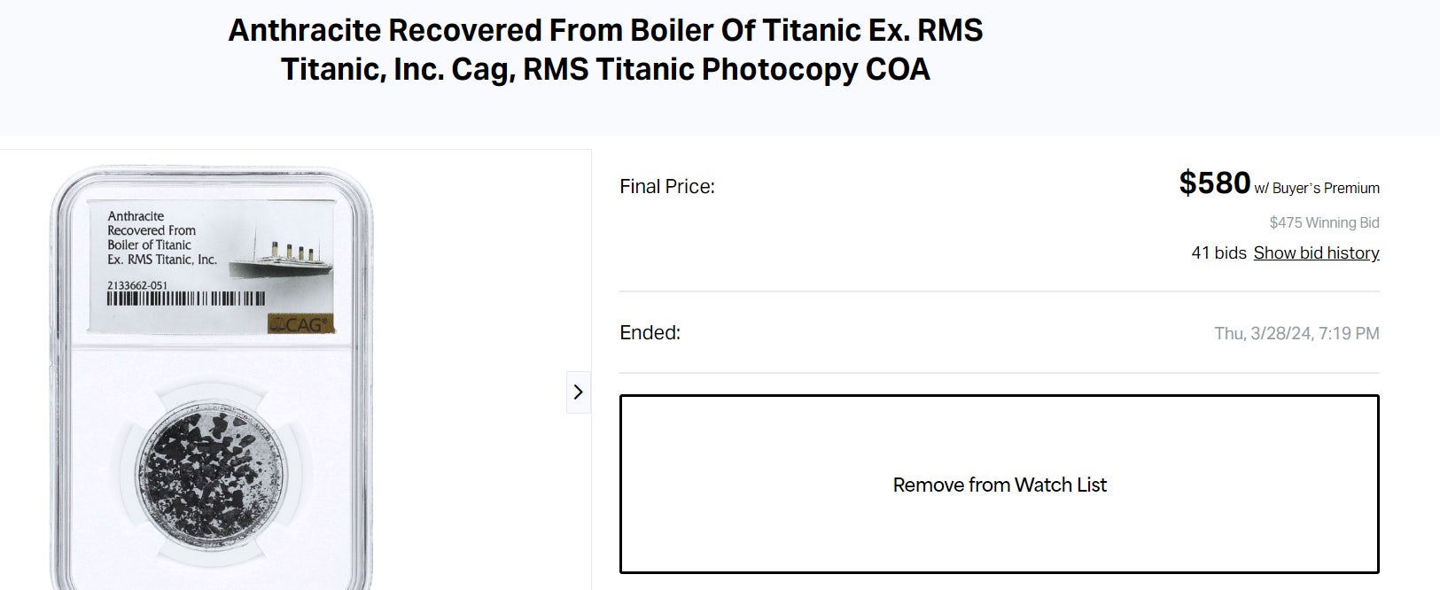 One last thing. Let's peak in on the history buff pieces. Here's a random chunk of coal from the Titanic.