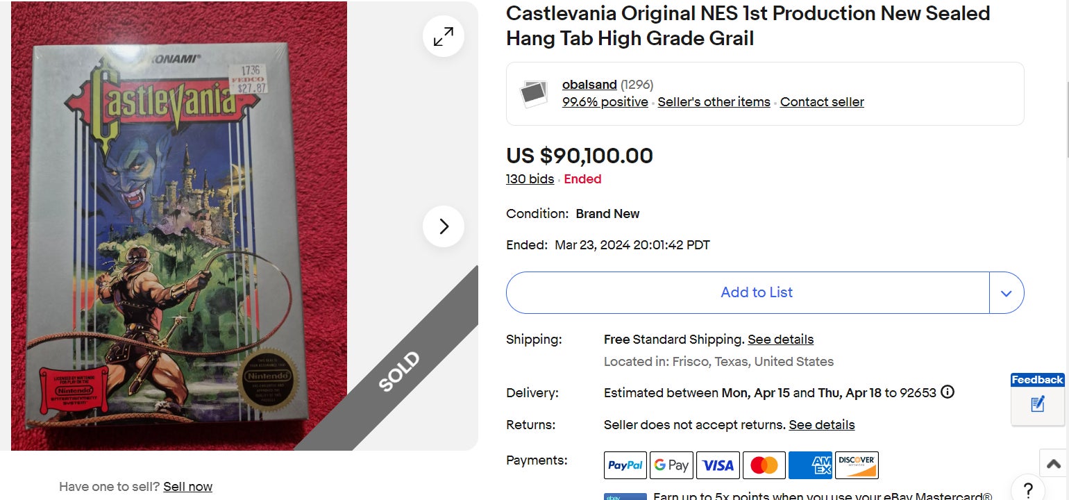 Let's check in on the video game market. Is anyone old enough like me to remember Castle Vania? I remember this game being hard as balls but then again I was always pretty much a Jim Halpert handicap in most video games. Pretty crazy to see how inflation is treating that wildly specific $27.87 retail value in today's market: