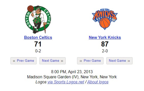 The Garnett, Pierce, Rondo, and - ehhh yeah fuck it why not - Darko Miličić Celtics era would end in this 2012-13 playoff round vs the Knicks. This game put them down 0-2 on the series which would soon after turn into a very familiar 0-3 hole. In true Celtics fashion, they decided to win a couple games just to tease their fanbase a little bit before signalling dueces in Game 6.