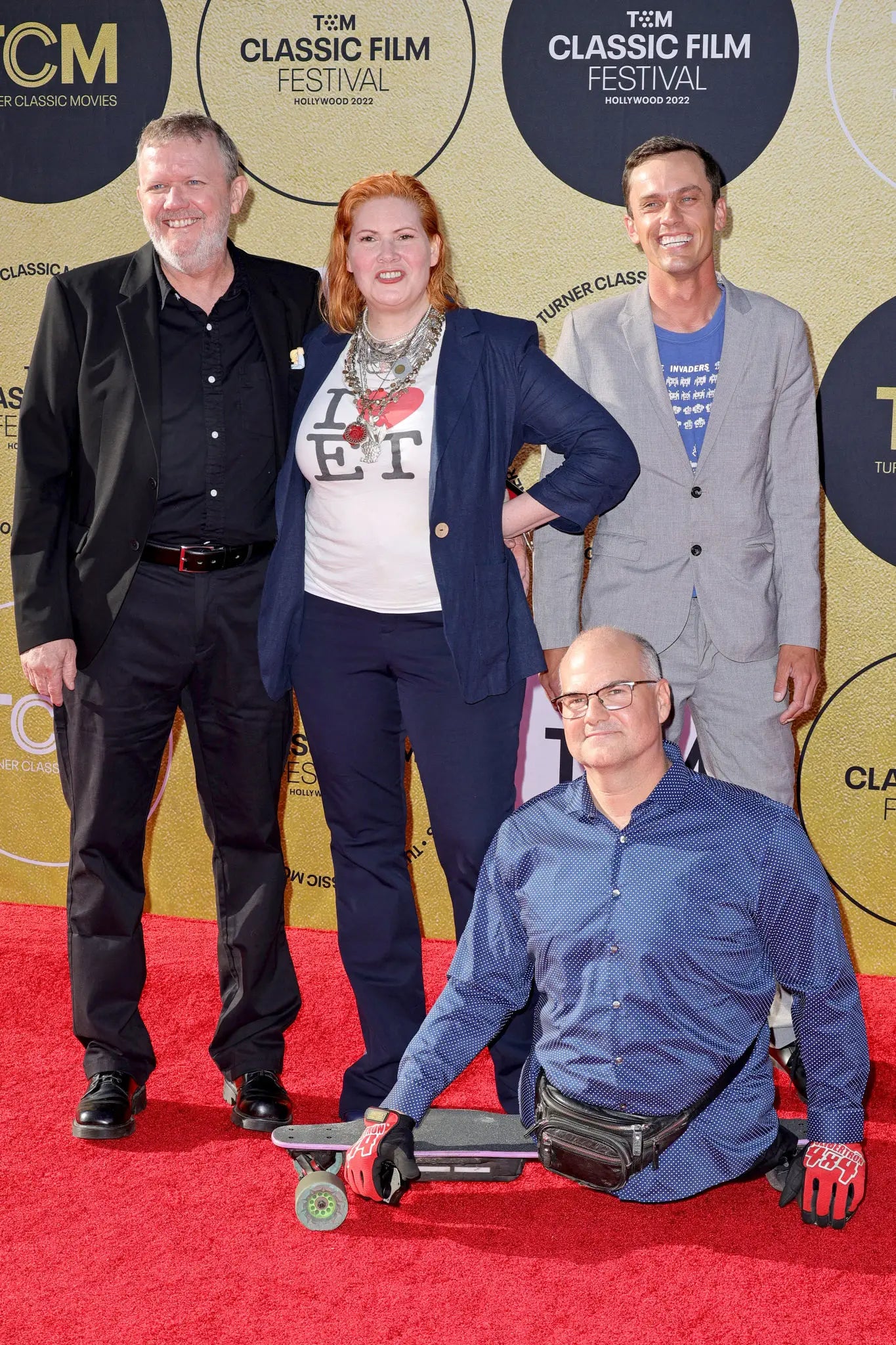 The legless gentleman in the foreground… The Lieutenant Dan of the group, if you will… Is Matthew DeMeritt. Matthew was born without legs, and when he turned 12, he got the gig to play the Extra-Terrestrial. Outside of Matt, two little people, Tamara De Treaux and Pat Bilon, took turns wearing the costume, depending on what scene was being filmed. DeMeritt walked on his hands and played all the scenes where E.T. walked awkwardly or fell over.