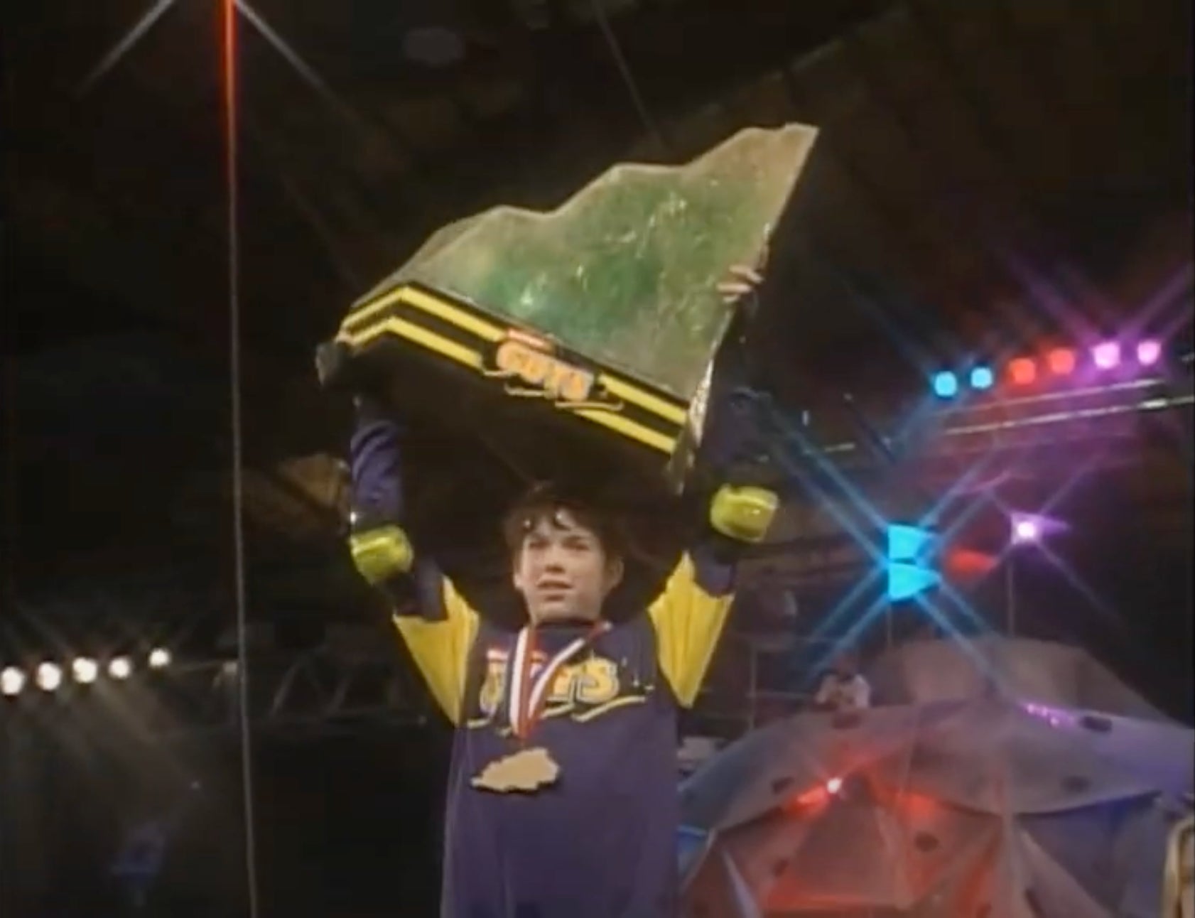 If you would have told me as a kid that the Guts trophy was a real moon rock, I would have believed you. The only thing I wanted more than that trophy was to listen to referee, Mo, lay down the rules. Her British accent did it for me, despite having no idea what "it" was. Competing in Guts challenges would have ruled because it had the best challenges, but we are talking final challenges here. Fighting snow storms and rock slides while slapping on the flashing lights as you climb to the top of the Aggro Crag looked awesome, but the challenge was over too quickly and it was only one simple task. The other final challenges were multi-faceted, and more interesting. The Aggro-Crag looked fun, but was over too quickly. So unfortunately, it had to go.