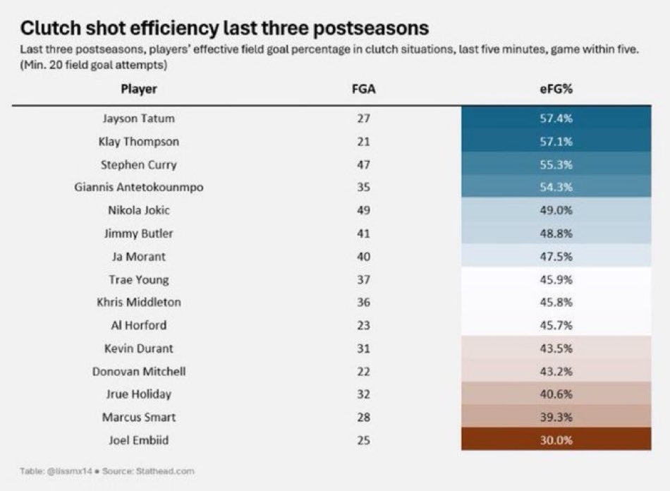 But here's the thing. As always, just look to the data. Another fun narrative that seems to exist is that Jayson Tatum is not a clutch time performer in the playoffs. A bizarre stance given ya know, the actual production