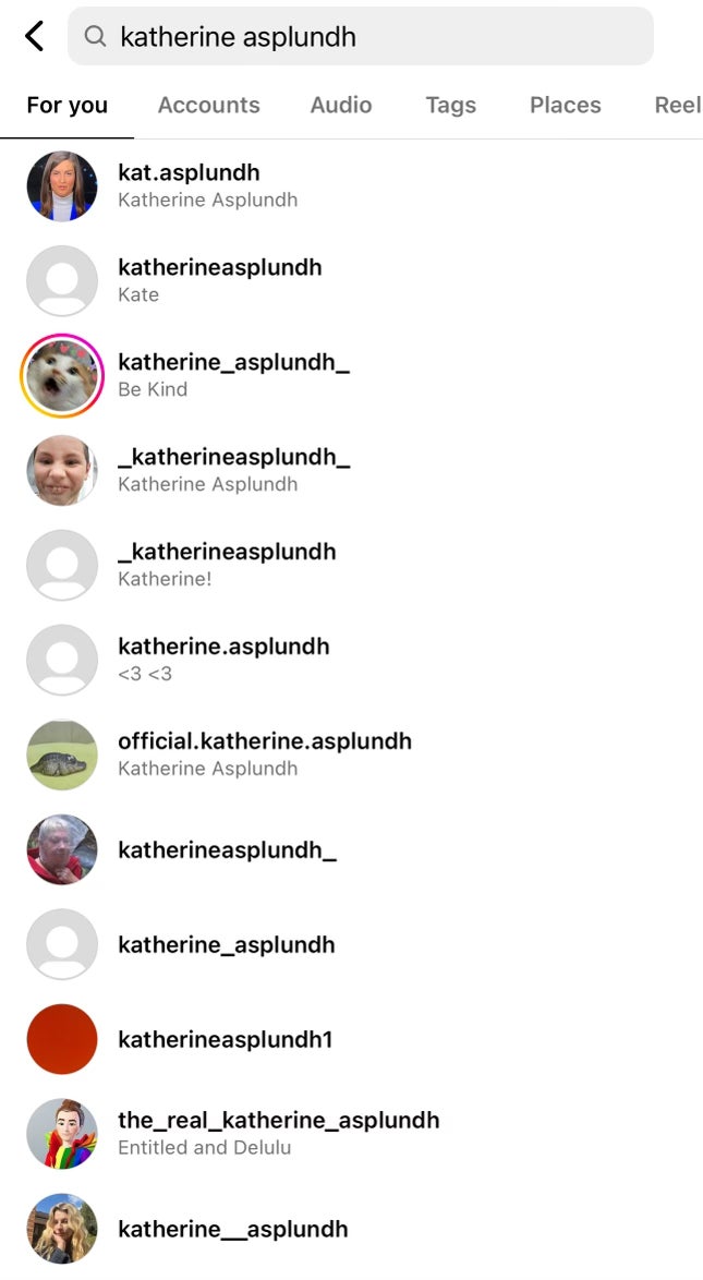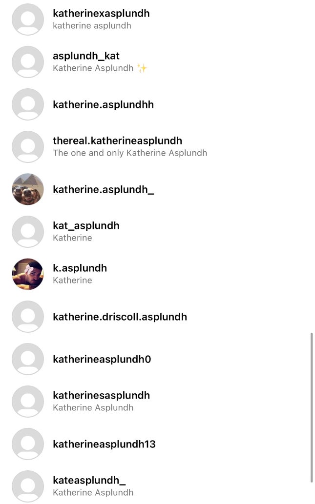 Interweb sleuths (sigh) were quick to find her TikTok account & gleefully snatched up an old video of her talking about how tacky it is when women change their last names on social media too soon. People have also come out of the woodwork allegedly from her hometown and don't have the kindest things to say. And, naturally, the internet continued to pile on by creating no less than 51 other Katherine Asplundh accounts thus far.