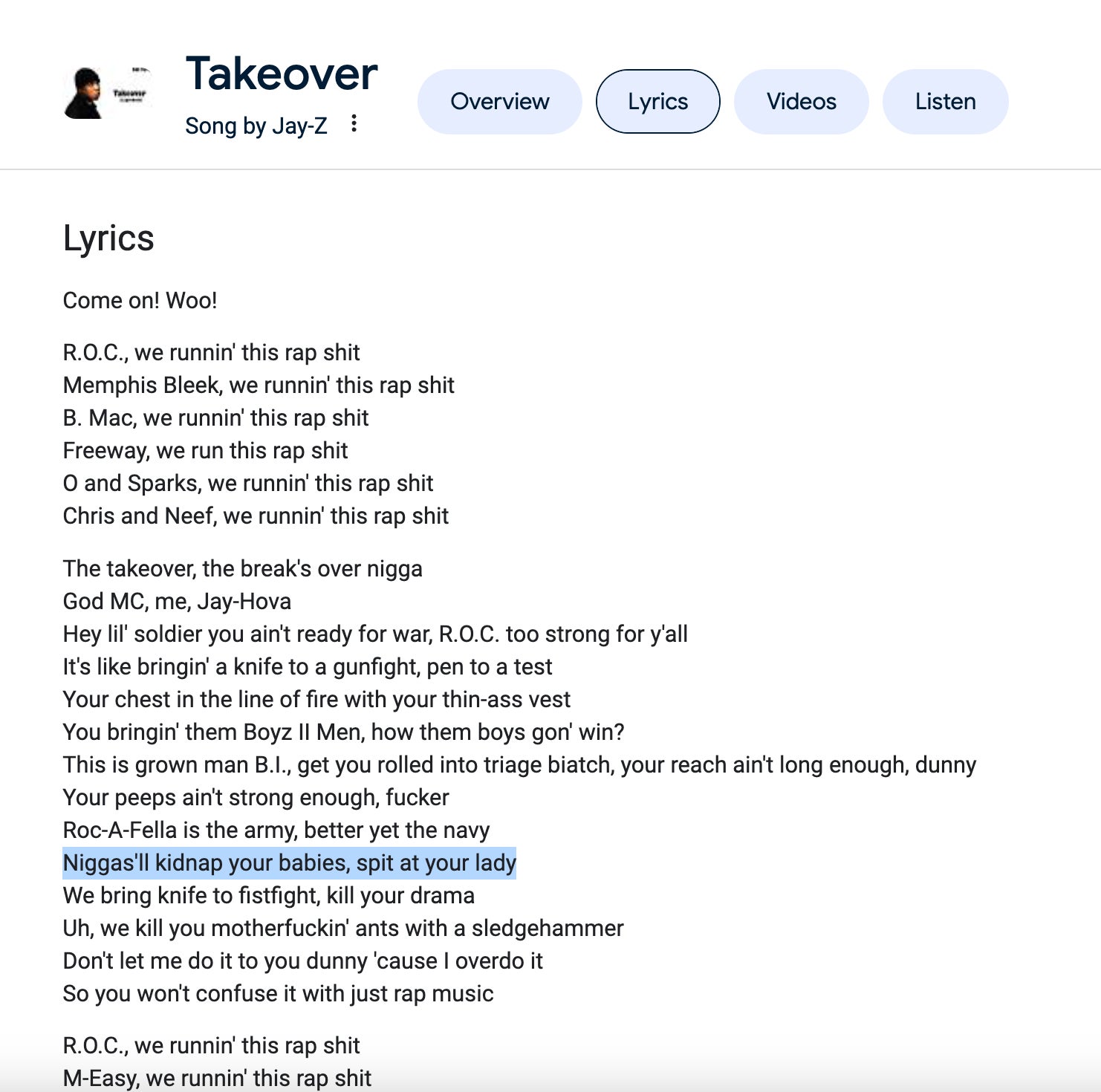 Hmmm, remember those lyrics to "Takeover" Questlove? The ones that also mentioned women and children?