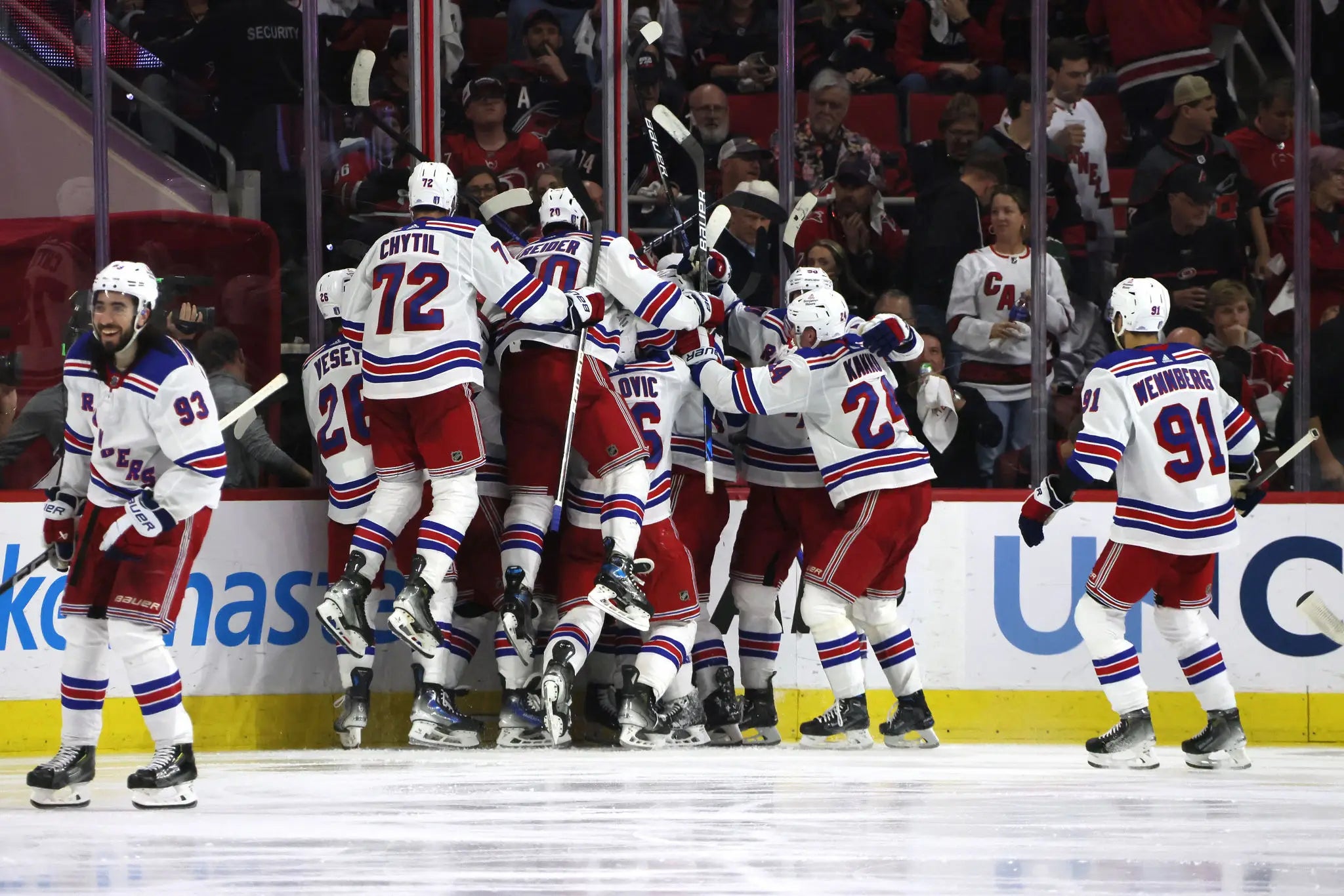 Monster goal. Monster 7-0 start to these playoffs. Monster 3-0 lead over a Carolina squad I was probably most afraid of. Shesterkin's streak of 3 goals against or less in the postseason reaches 30. The big guns are producing offensively every night. Special teams are rolling. Filip Chytil made his surprising return to the lineup, looked awesome and makes this team even deeper. If you were one of many who didn't think these Blueshirts were for real, think again.