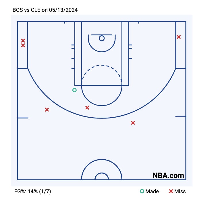Not until 2:49 did the Celtics make a FG, and it came off a Tatum strip. Everything about that picture is gross. Got a lead, went for homerun plays, which is the exact opposite of what you want to see in that moment. No ball movement, no forcing the defense to actually defend, just setting for jumpers. There is not a single paint FGA in over 5 minutes (but there were some FTA to be fair).