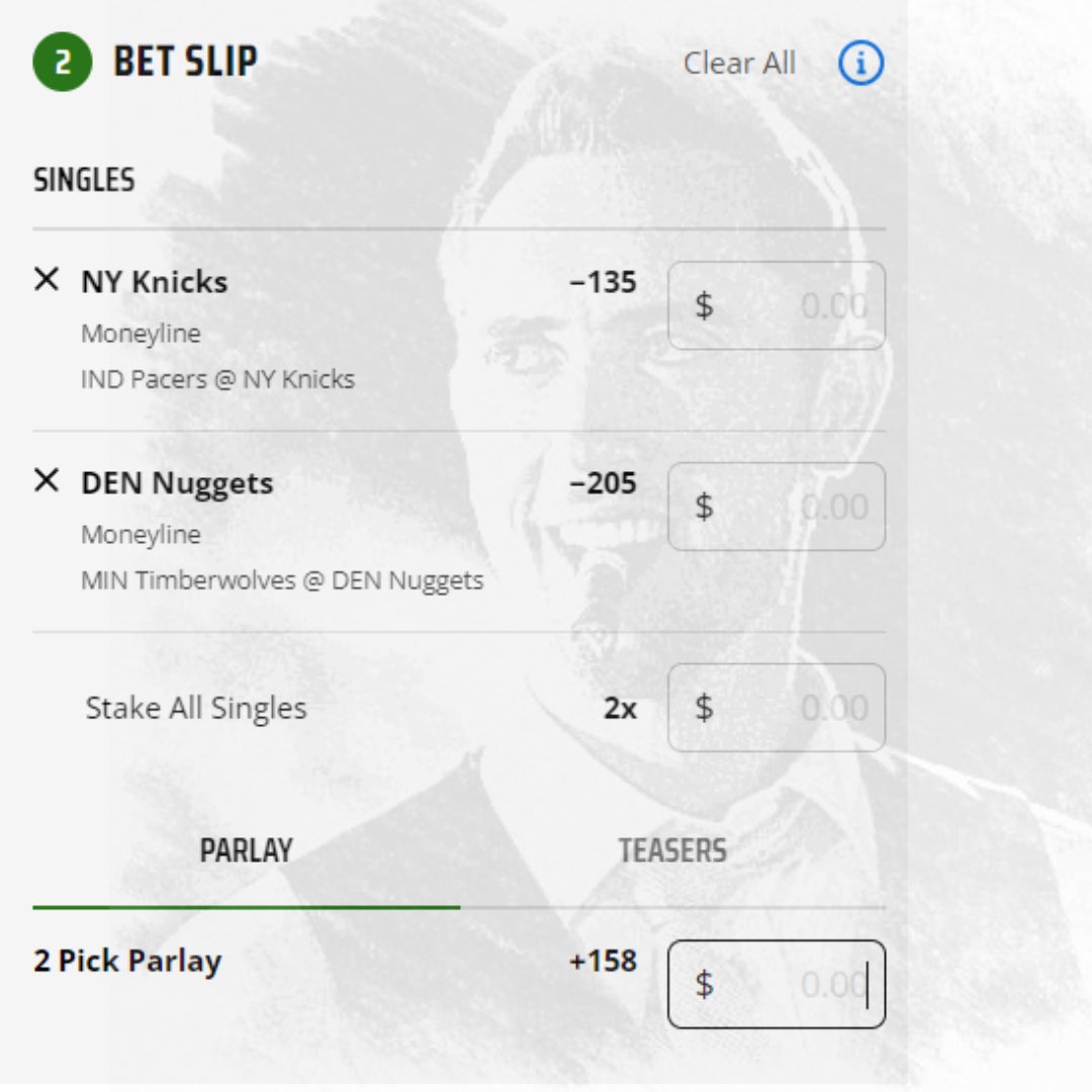 Anyway - let's assume the Nuggets are sitting at 75% here like all Game 7 home teams and the Knicks are at 73%. That gives us a 54% chance of winning a moneyline parlay. I have Draft Kings giving +158 on this which equates to a breakeven percent of 38.7%. Meaning, we need better than 38.7% chance of winning for it to be a good bet. My math says 54 is indeed higher than 38.7.