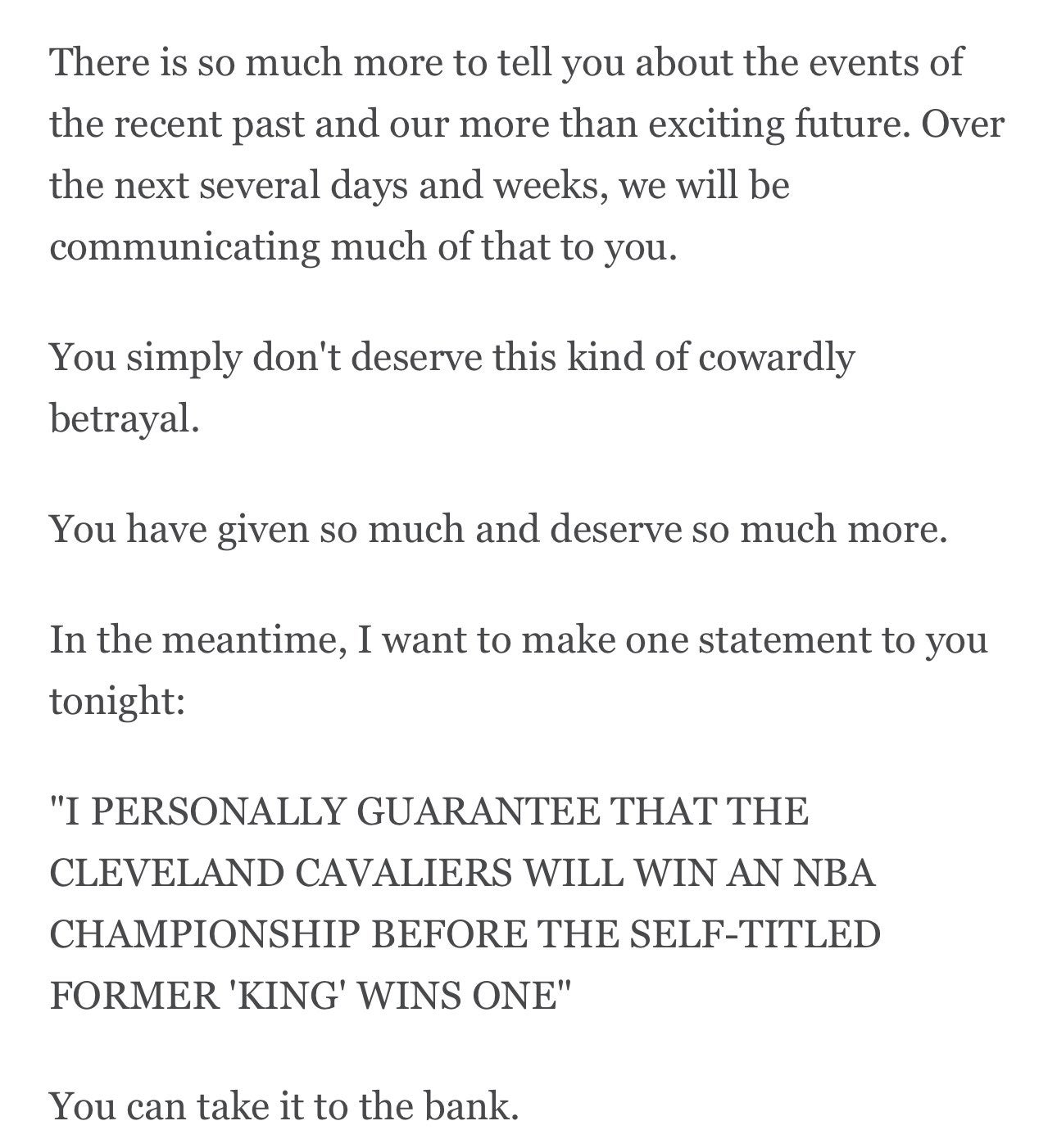 And it's great to fucking read this morning that there's someone else who agrees with me. And that man goes by the name of Dan Gilbert. Profession: OWNER of the Cavs.