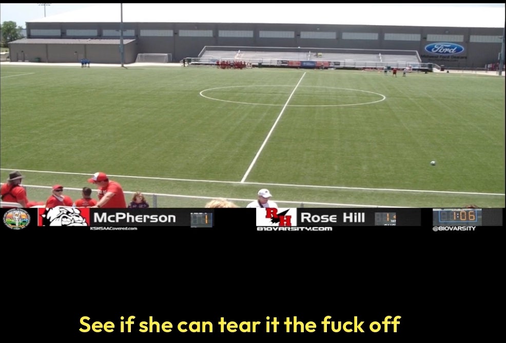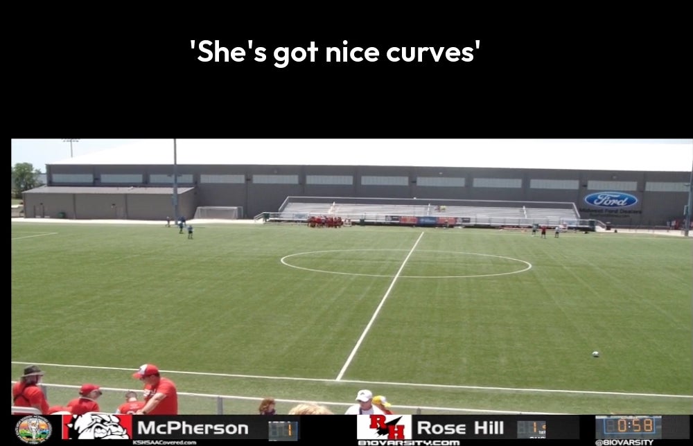 The voice you hear during halftime of the third place game of a Kansas high school girls soccer state tournament between McPherson and Rose Hill is that of Toby Moore, a man who is now barred from covering any KSHSAA sporting events going forward. I wonder why.