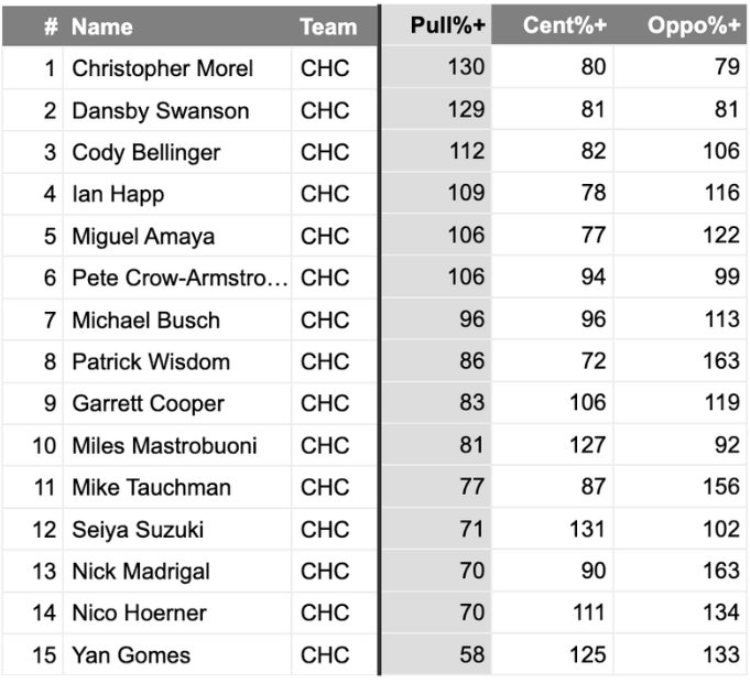 The Cubs are borderline ignorant to pull-side power. This is maybe the hardest thing to show you guys but the best starting point.