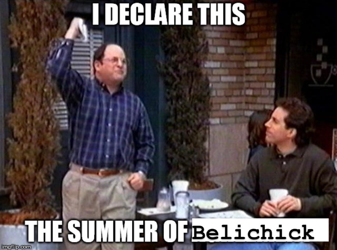 After killing it on this years NFL Draft panel for ESPN. Then killing it at Brady's roast. Then nearly stealing the show at Gillette the other night. And now this revelation that he will be juuuuuuuust fine being unemployed this year, with Jordan on his hands, I don't think we have any choice but to declare this is officially The Summer of Belichick.