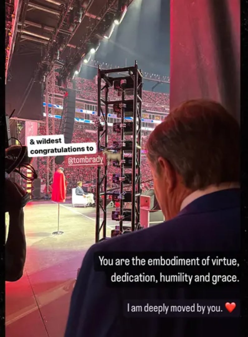 The above clip up top is from Jerry and I the other night on the Tom Brady Ceremony red carpet. (The full video and clips will be out if Nick Fasoli is ever able to actually get to it once he's done editing Viva episode #389. Fingers crossed before the 2024 NFL season kicks off)