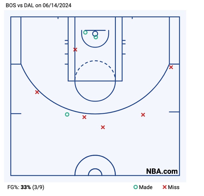 It's pretty unusual to see the entire starting five lay an egg like this, but again a lot of this has to do with the Mavs defense. How many times did we see any starter be unable to get past Kyrie/Luka? It was as if offensively the Celts decided to play right into the Mavs hands. Instead of imposing their will and getting to what they wanted, they instead played into the areas the Mavs wanted. Instead of playing with force, they were indecisive. Then came the low shot quality threes, and the rest was history.