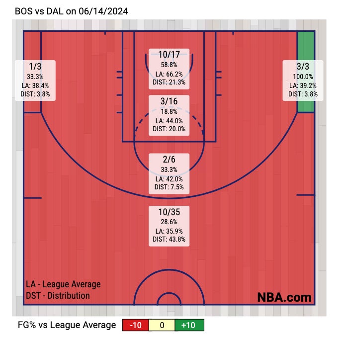 The hope is they will finally snap out of this and the comfort of being home in Game 5 will help. Granted they did shoot 25.6% in Game 2, but it does feel like they are due. Game 4 was the Mavs' game of magnet ball shooting, so there's no reason to think Game 5 can't be that for the Celts. As long as they generate 3PA through good ball movement and drive and kicks, they should let it fly with confidence.