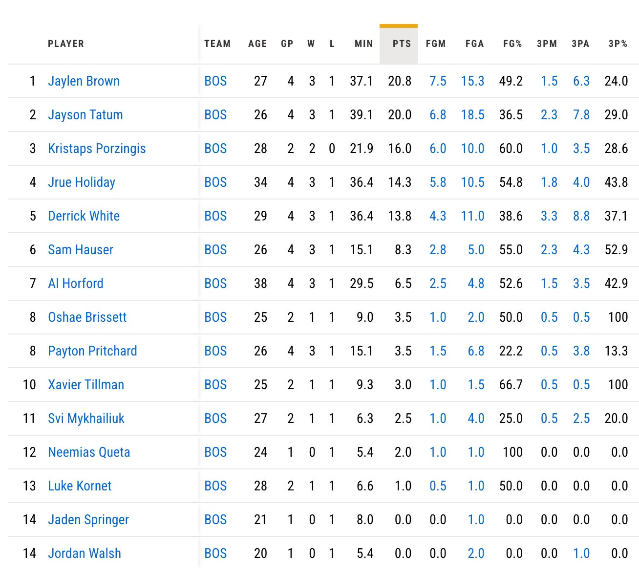 Both Tatum and Brown being under 30% despite their high volume is….not great. Payton Pritchard shooting 13%……also not great.