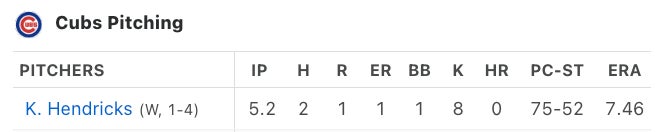 Even so - none of that compares to Kyle Hendricks dealing today when we needed him most. The sentimental will always trump and never more so than for a pitcher on his last legs, giving his only club everything he's got one last time before it's all over for good.