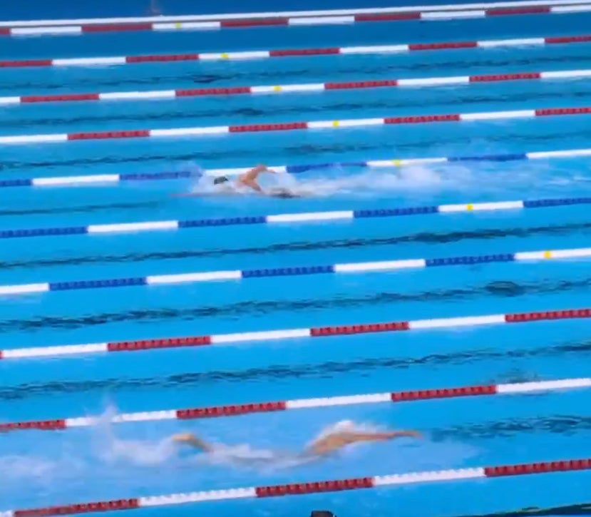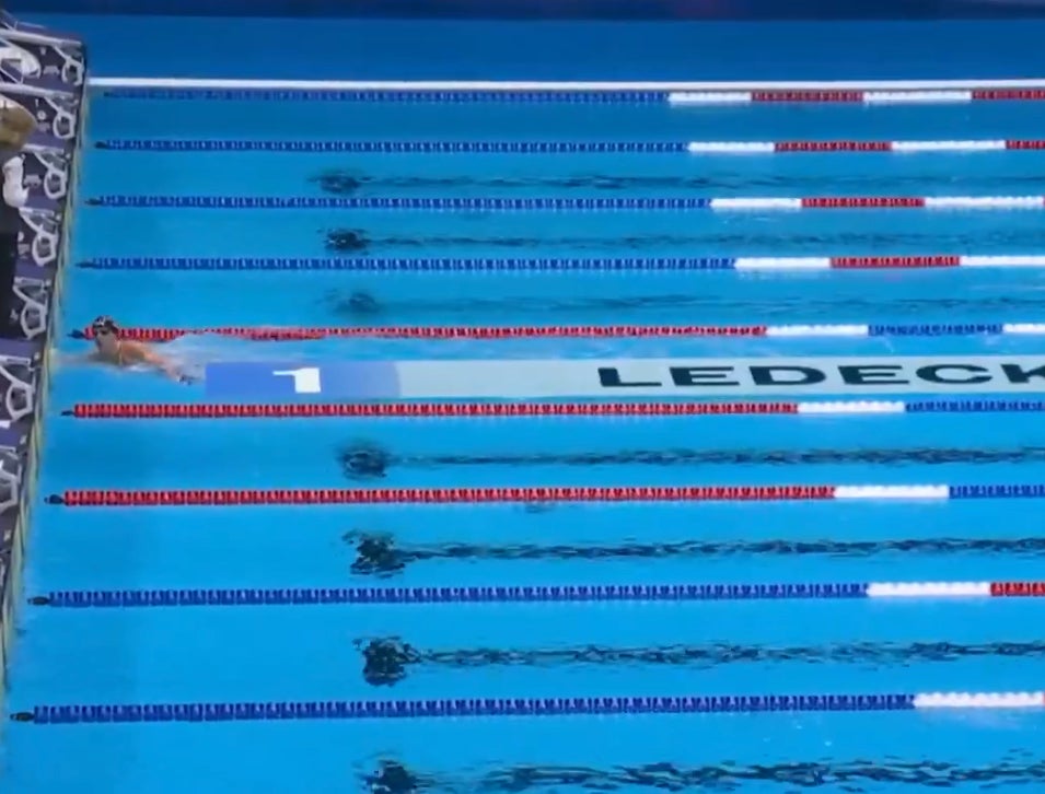 There's not a person in fucking sight. In fact if you want to laugh even more there's a shot of a girl a few lanes down swimming in the opposite direction of Ledecky, basically she got lapped.