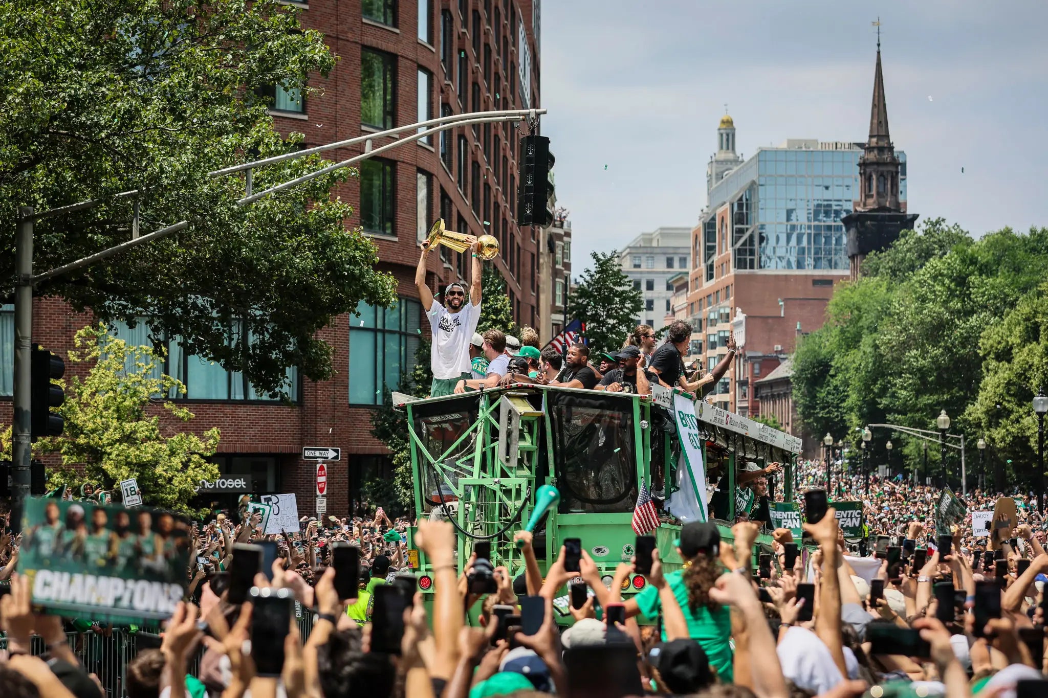 While Monday-Thursday has consisted of edits, highlight tapes, interviews, celebrations etc, today's dose of Celtics Social Media Crack comes via the parade. I'm not sure you heard, but there was a championship parade today in Boston that reportedly 2 million people attended. It was a whole big thing.