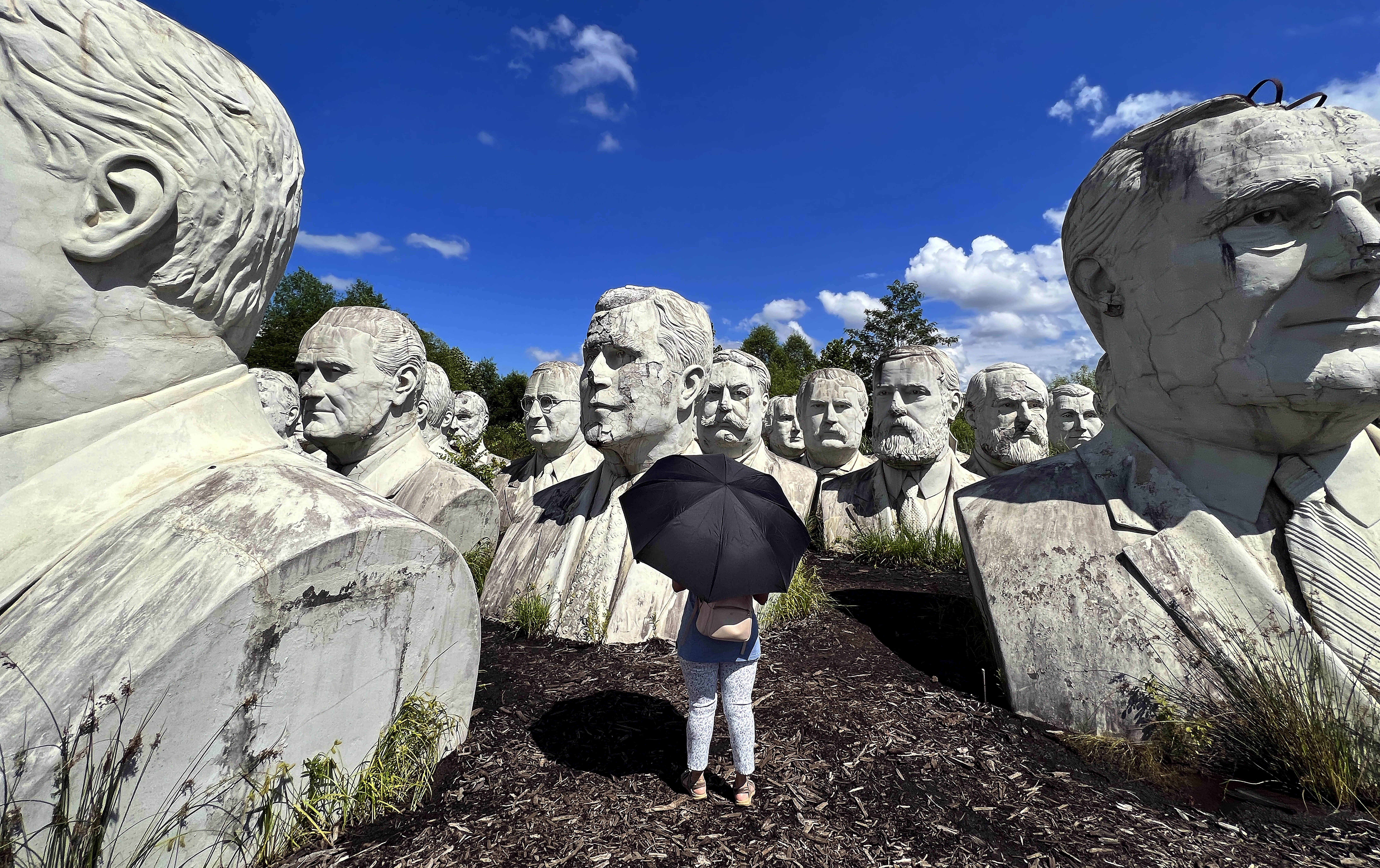 The field is in Croaker, Virginia. Just 43 big ol' crumbling president heads that once belonged to a park that no longer exists. It was a terribly run park. It opened in 2004, cost $10 million to build, and went completely belly up by 2010. But they still have the heads.