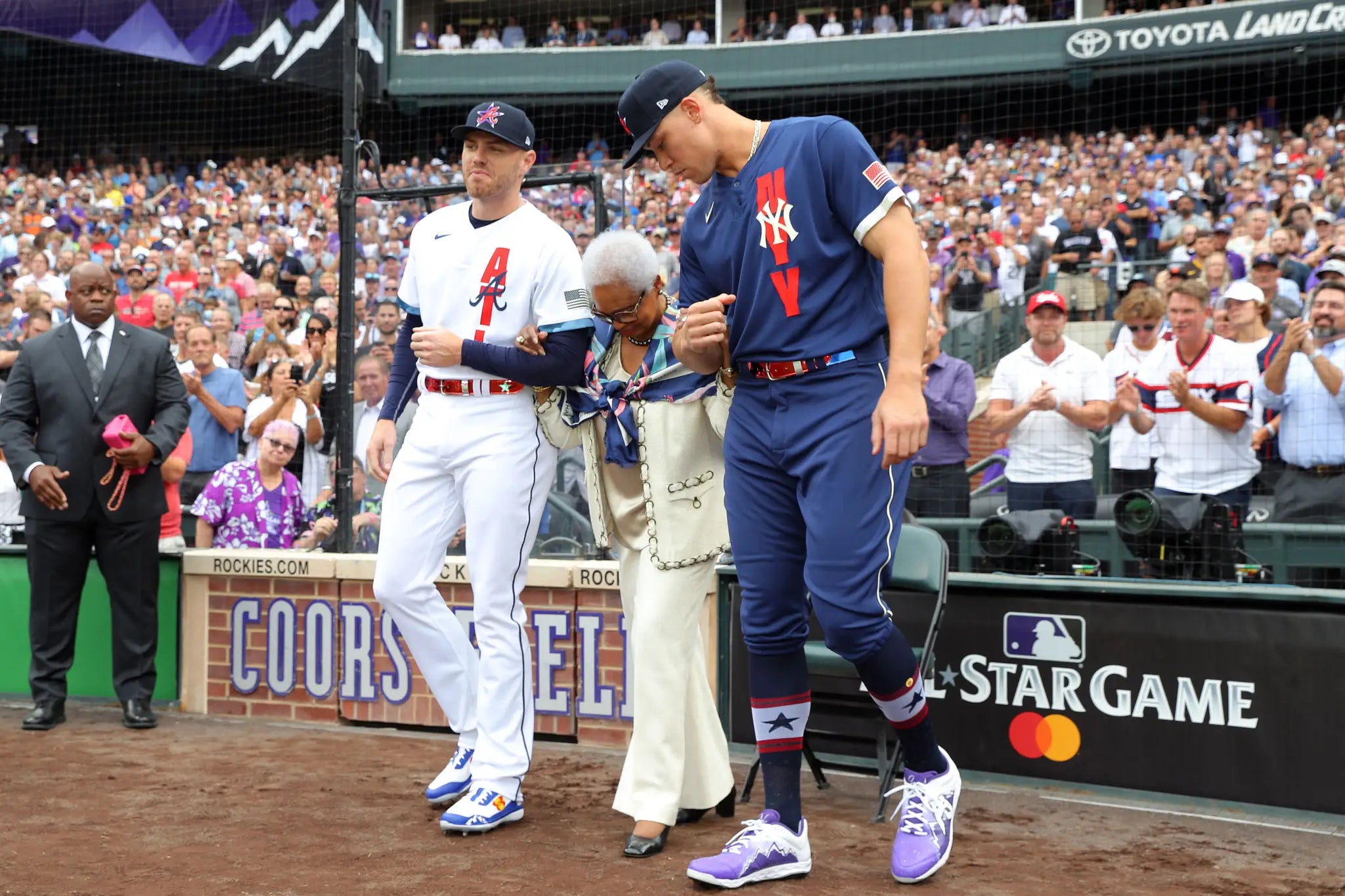 Look at what they took from us! Look at how gorgeous our game used to be! Back in my day we used to have MLB All-Stars wearing their own uniforms with an All-Star patch on their jersey. It didn't fit together but it was a beautiful mess. You had the classic uniforms out there, Yankees pinstripes, Cubs homes, Dodgers uniforms, Orioles 90s uniforms, it was glorious. Then Covid happened and MLB figured out that they could make a ton of money by having the All-Stars wear special uniforms with a connection to the city that the game resides in.