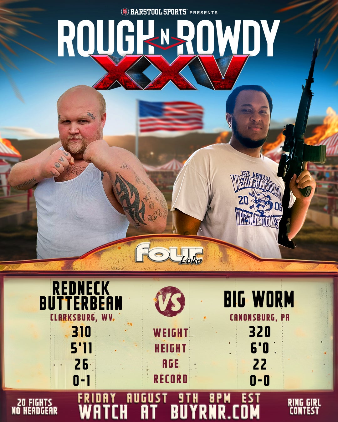 Don't forget to order the RNR25 PPV on BuyRNR.com so you can watch their fighter interviews + 20 brawls + ring girl contest + Dave PORTNOY, Big Cat!!!, Robbie, Large also round out the commentary team. Also how fucking sweet would it be to be on TEAM PORTNOY? Would be the honor of a lifetime. Just imagining BIGG RIGG etched into navy blue cloth has me soaked to the bone.