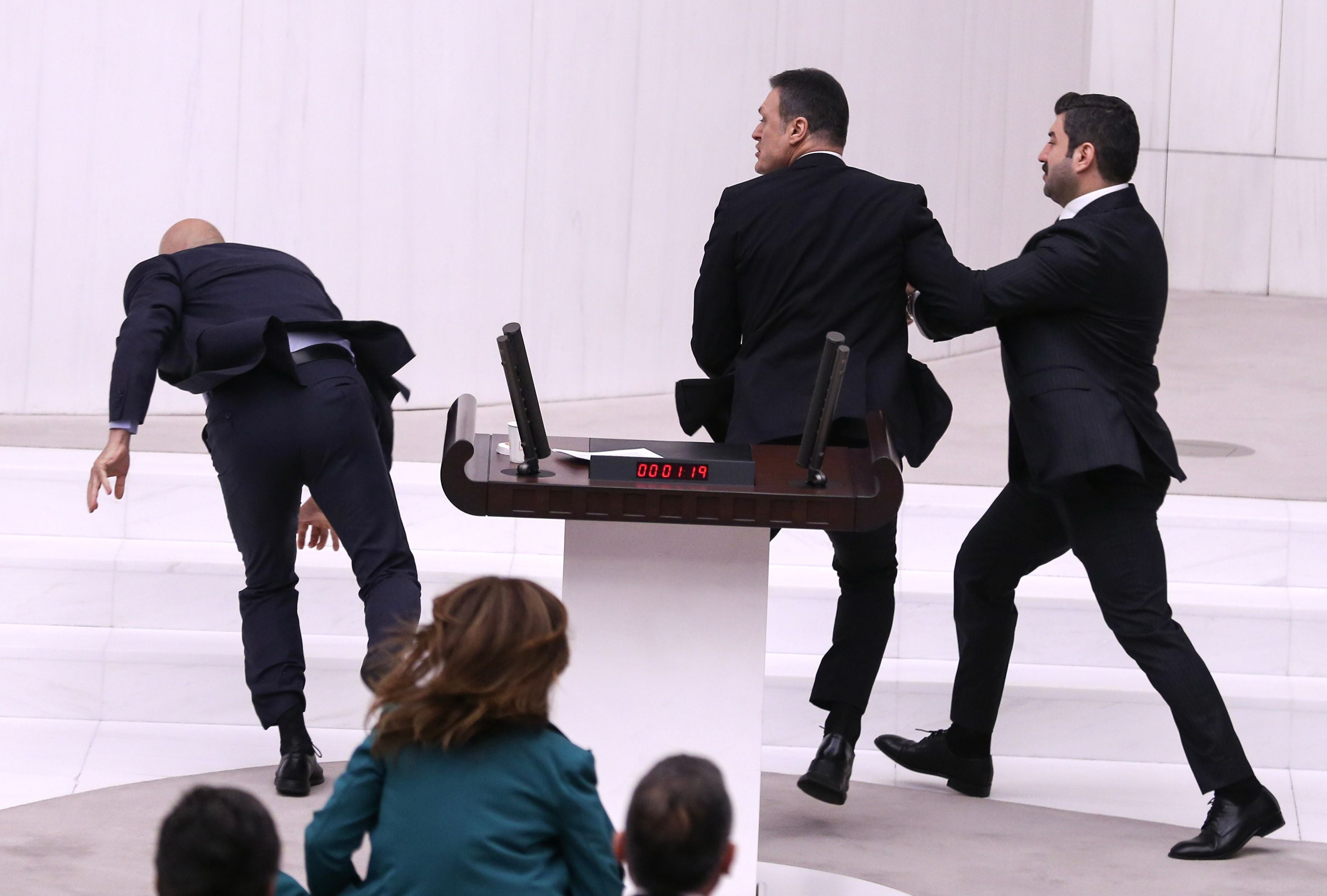 Politician Tossed to The Ground, Blood Everywhere, a Full-Blown Rumble Broke Out in Turkish Parliament Today