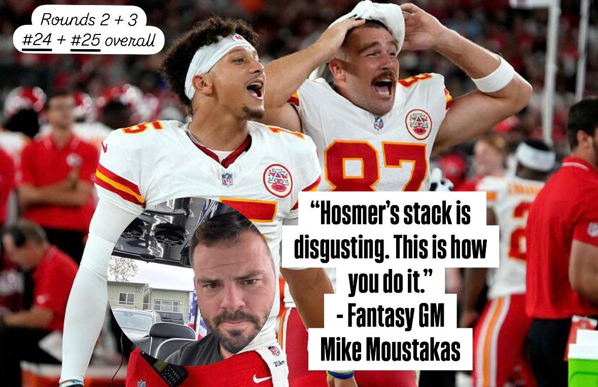 Bijan Robinson over Breece Hall is not my favorite move. Bijan has a ton of potential but will need to take the next step for that pick to pan out. A bit risky at #6 overall, but I do like Travis Etienne, who these guys drafted last year to great success at #19. Dak Prescott was my favorite pick as he led the league in TD tosses last year. What I love about him was he was running more too in the back half of last season. If he continues to tuck it, I see no reason he doesn't eclipse 300+ rushing yards which is just enough according to all Patrick Mahomes drafters.