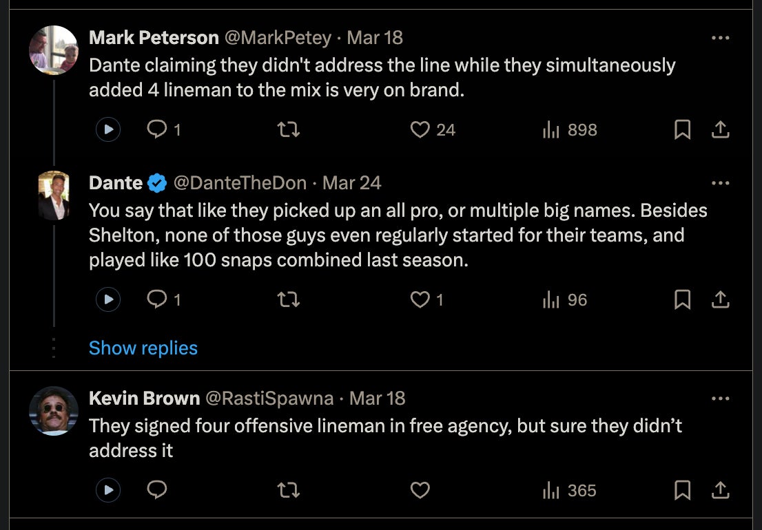 And if you think Poles drafting Kiran Amegadjie, and signing Coleman Shelton at center is an example of them addressing the O-line, then oh buddy we got an entire different subject to talk about.