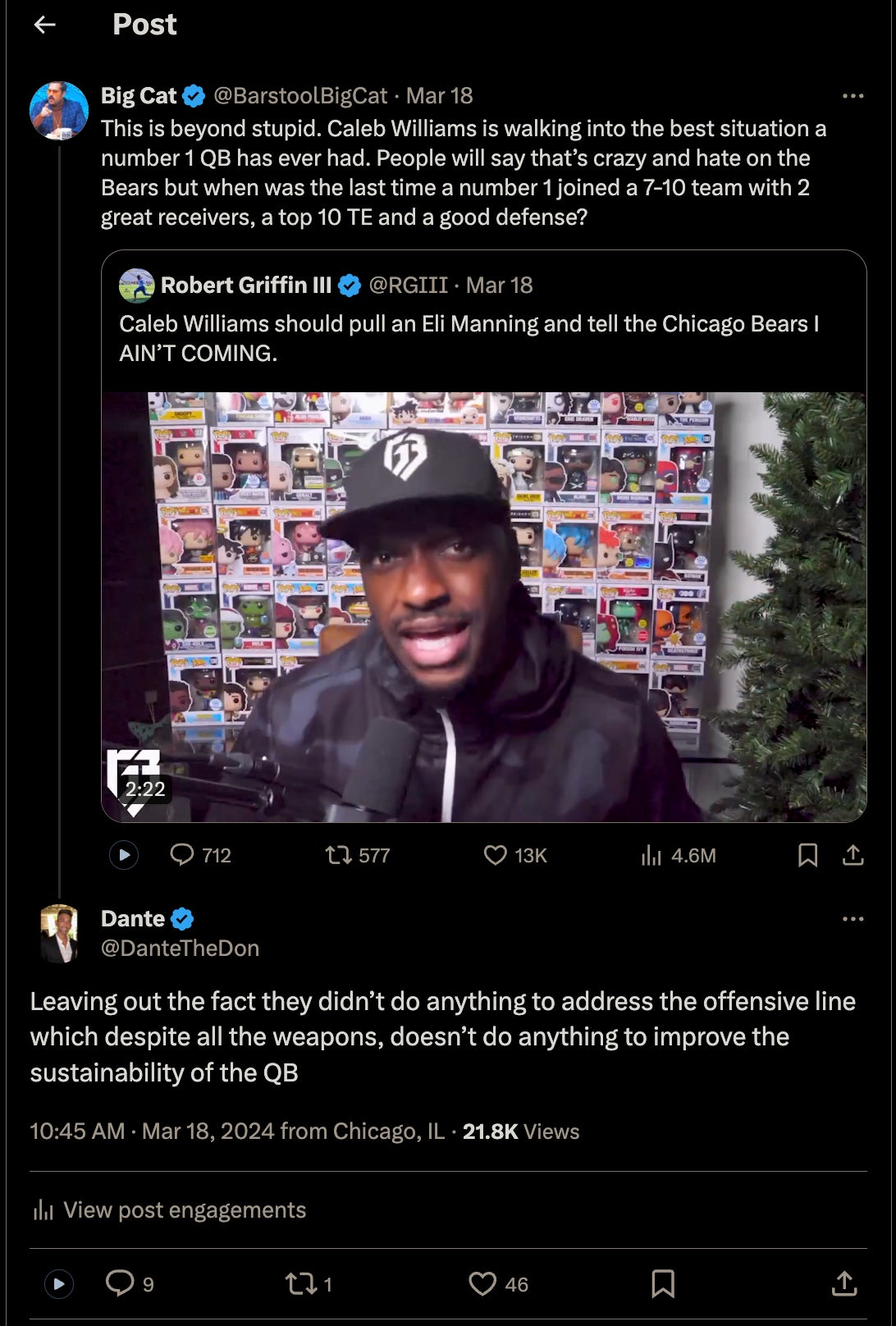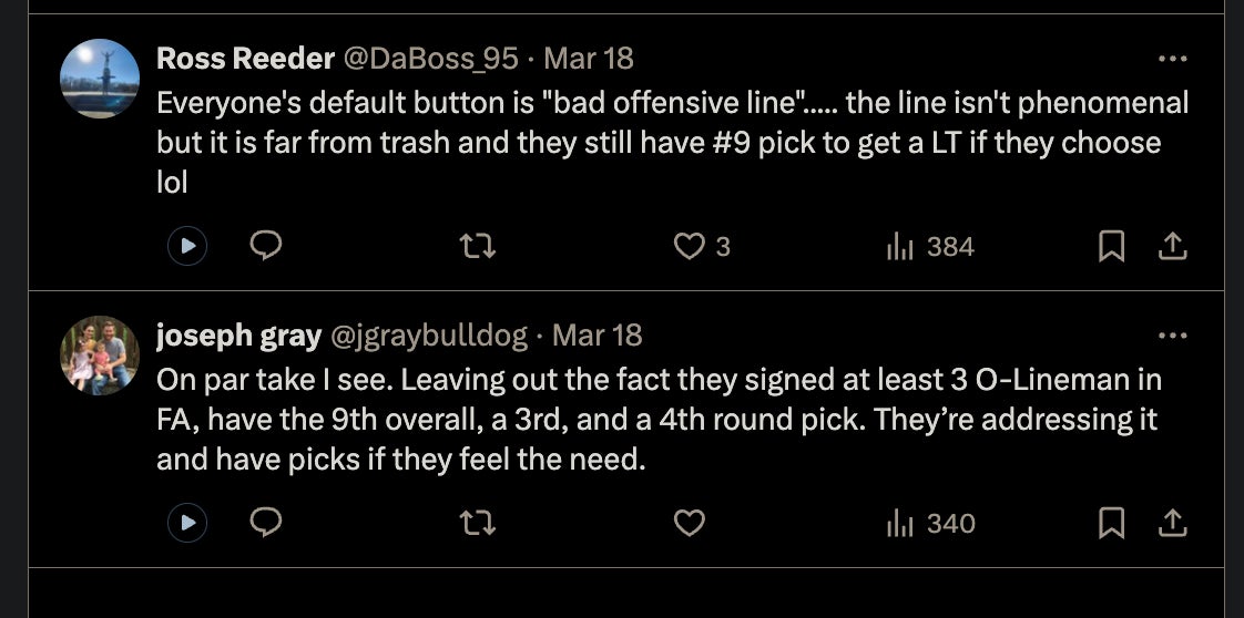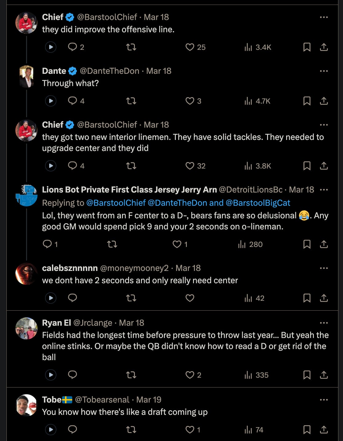 What I am saying, is if I was a Bears fan, I would be concerned/focused on/screaming that it’s extremely disheartening to watch the Bears dump all this money into weapons to surround their savior (Caleb Williams) with, and not adequately address the ginourmous line issues that have plagued this franchise for 30 years.