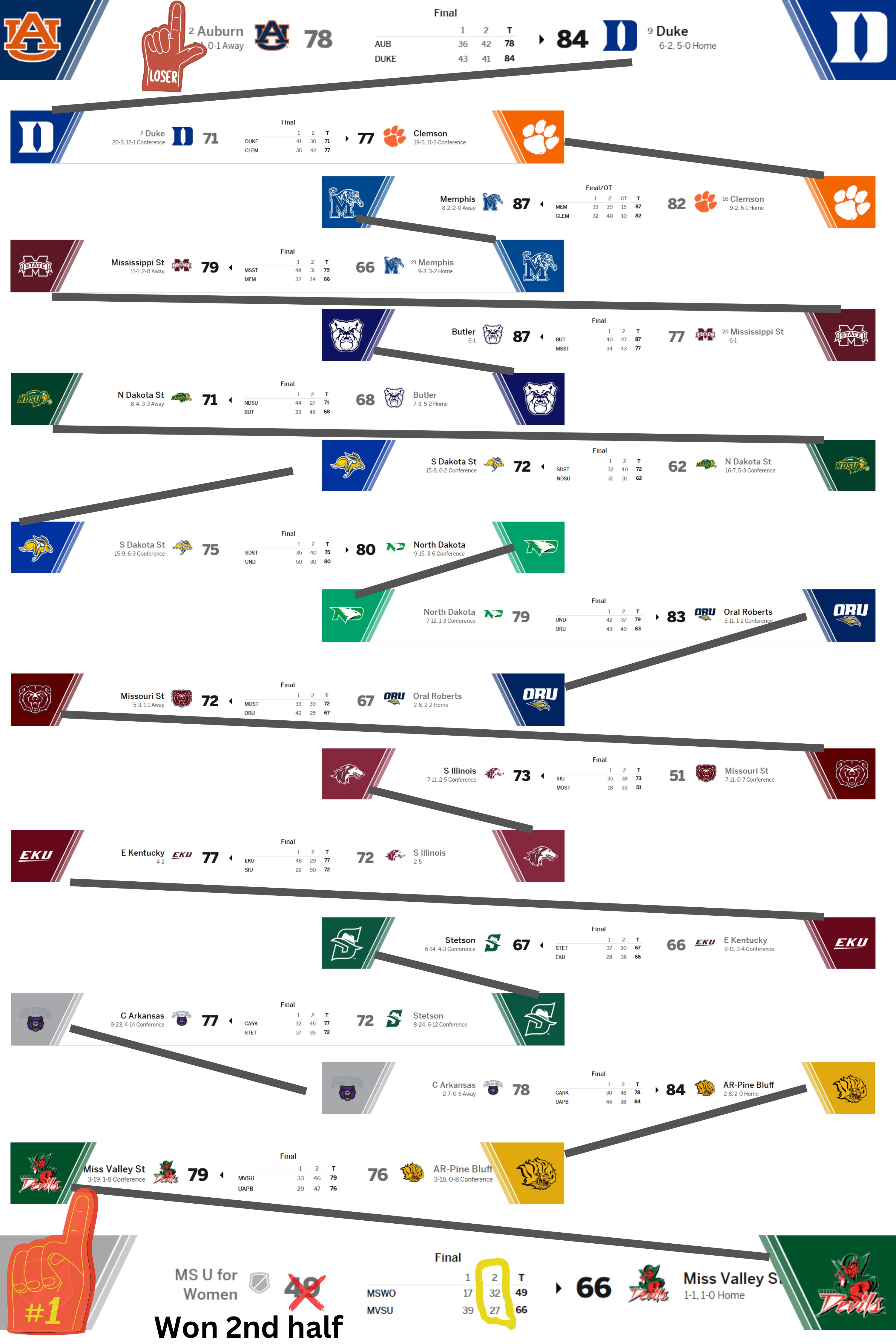 As you can see by my patchwork Canva art that would make John Nash proud, we have a nice little chain of who-beat-who in college basketball that starts at who beat Auburn and goes all the way down to some random DIII school of women who, while still lost, beat Mississippi Valley State in the second half.