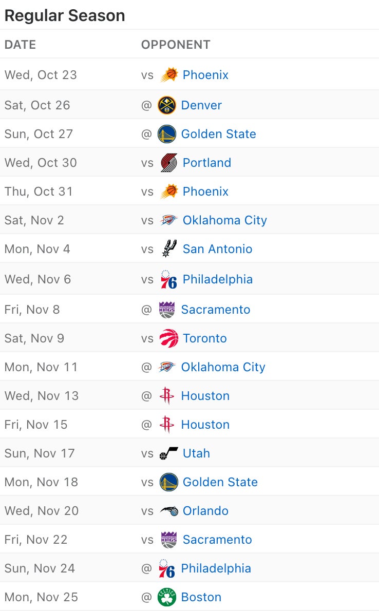 Now, the good news is if you assume Kawhi is sitting all of the preseason games, the Clippers season doesn't officially start for another 29 days. Giving Kawhi's knee another month might be enough to get him right, although that seems like a stretch for a guy who has had all summer off and is still having issues. When you think about playoff seeding and head to head tie breakers, the Clippers start the year with a ton of important matchups