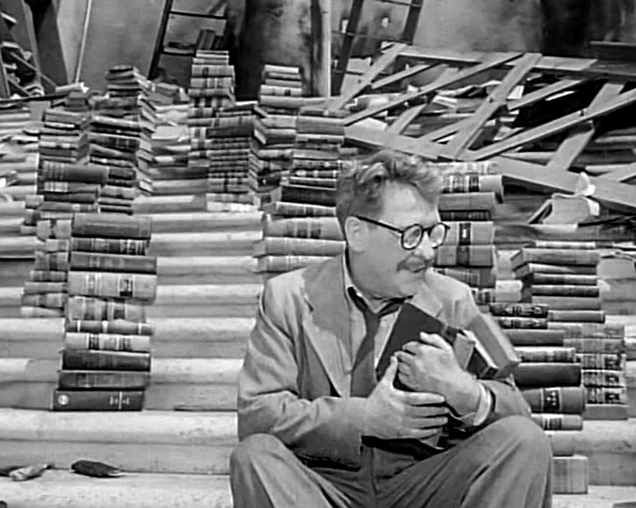 There have been times in our culture when being considered "bookish" meant you were a social outcast. When "bookworm" was used as a pejorative term, used to describe and anti-social loner. From this Burgess Meredith character in the most celebrated Twilight Zone episode ever. To the first person speaker in the Simon and Garfunkel song "I Am an Island," claiming he has his books and poetry to protect him from having to socialize with others. To the Tri-Lambs in Revenge of the Nerds.