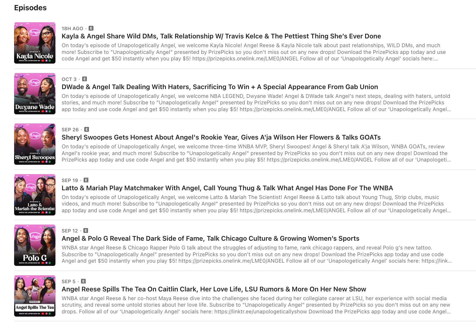 With this lineup in the first five episodes, having Kayla Nicole as her sixth guest is very clearly a set up to get Travis Kelce, Taylor Swift clout. Why Angel thinks it's appropriate to do this on her basketball/lifestyle podcast? I'm not sure. I'm also not going to say Kayla is completely innocent in this, as she seemed more than happy to answer all of these questions, but again - why the fuck is Angel even asking them? Why is she saying shit like "I liked you guys together"? Why is she using the "i'm rolling my eyes at your ex boyfriend's new girlfriend" tone when talking about it all? What the fuck is it to you, Angel? Is it because Caitlin Clark likes Taylor Swift? Now all of a sudden you have to have her boyfriend's ex girlfriend on to throw shade and cause problems? What kind of friend are you to Kayla for using her like this? Gross, embarrassing, desperate shit. And RIGHT in the middle of the WNBA finals! When girls (and men!) everywhere are watching more than ever - is this you "doing things for the WNBA"? Huh, weird. Doesn't look like it to me.
