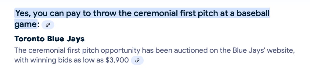 You know what? In a weird way, this reminds me of the fact that you can throw out Ceremonial First Pitches at baseball games by just paying for it!