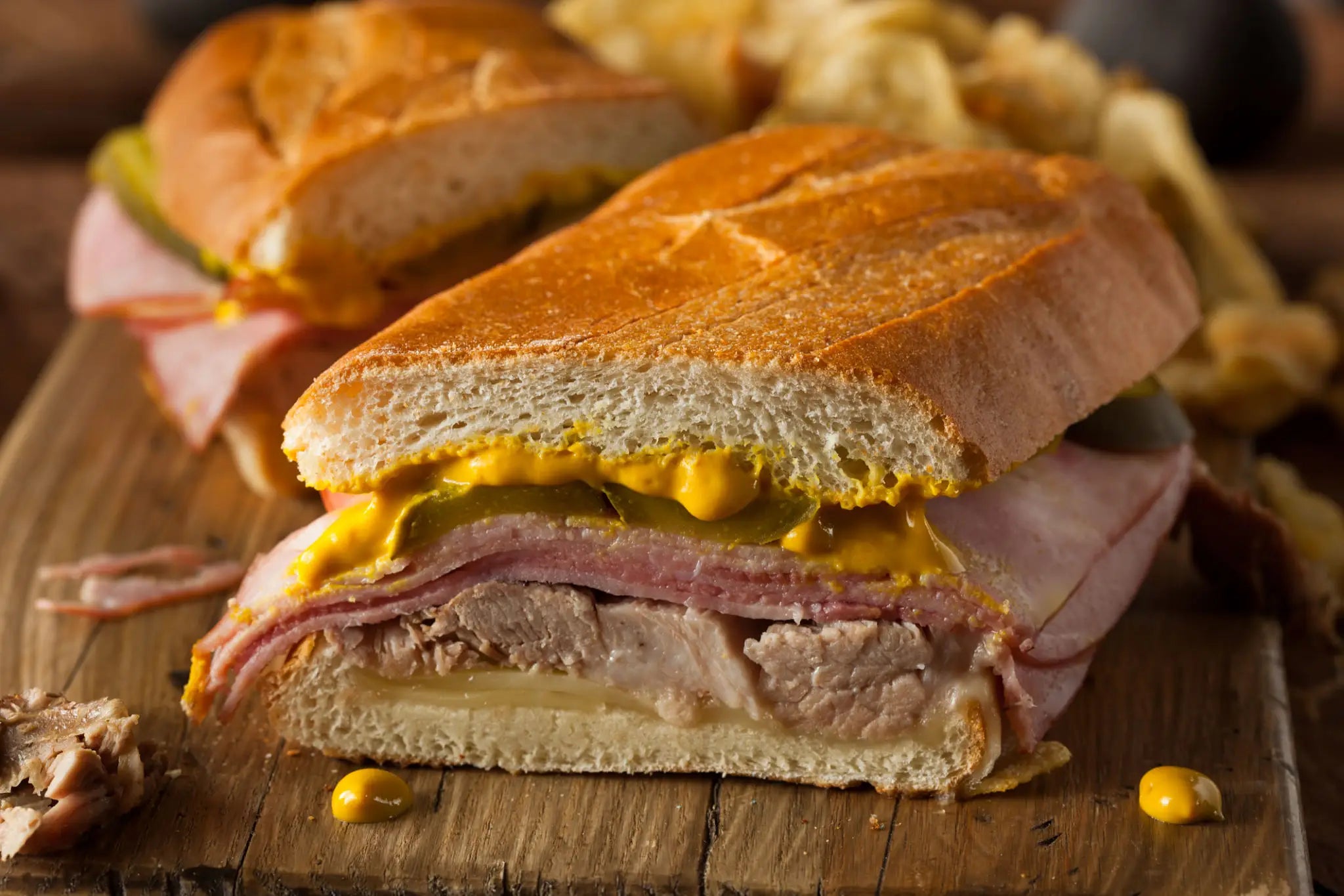 The Cuban sandwich already has a lot going on within… Roast pork, ham, Swiss, pickles, and mustard on Cuban bread that is buttered on the outside and pressed until it looks like this…