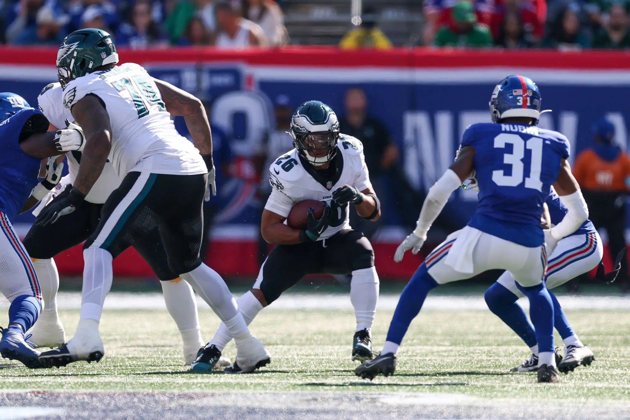Congratulations to New York Giants fans who I guessed boo'd Saquon really loudly today? I don't know, Reags was saying some nonsense about it as if Giants fans had boo'd Saquon to death. As if they boo'd him so loudly that he immediately regretted his decision to leave that dog shit franchise in New Jersey to join the Philadelphia Eagles. I guess that lasted all of 1.7 seconds before Saquon Barkley decided to unleash hell on his former team.