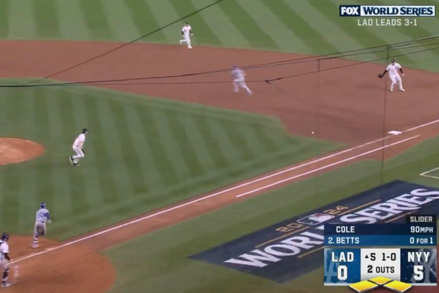 All Gerrit Cole has to do is keep running to first base here. He's got about 20 less feet to cover than Mookie and he's already in motion. Every pitching coach everywhere is yelling something like COVER THE BAG.
