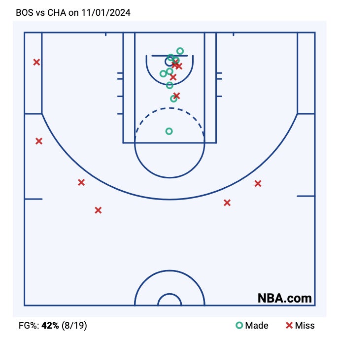 - I touched on it earlier, but there's nowhere else to really put Jaylen's 0-6 from deep. He's now 1 for his last 21 from behind the arc. That's brutal.