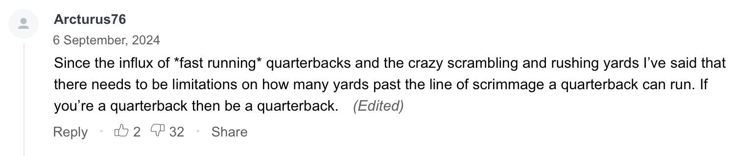Yes. Yes it is. Lamar Jackson is quite literally an NFL quarterback, and there is no arguing that. But I know that's not the point. Obviously the "Lamar Jackson is a Running Back" crowd is not arguing whether he technically lines up at the quarterback position. They simply believe that Lamar Jackson's ability to read a defense, and throw a football with his pathetic right arm is so far inferior to where a legitimate NFL QB should be at, that they don't see him as QB at all. He's a running back who occasionally throws the football. A real quarterback shouldn't be running the ball "x" amount of times per game. A real quarterback should stand in the pocket, survey the field, and find an open receiver. They don't want the supposed leader of their football team engaging in bullshit plays like this.