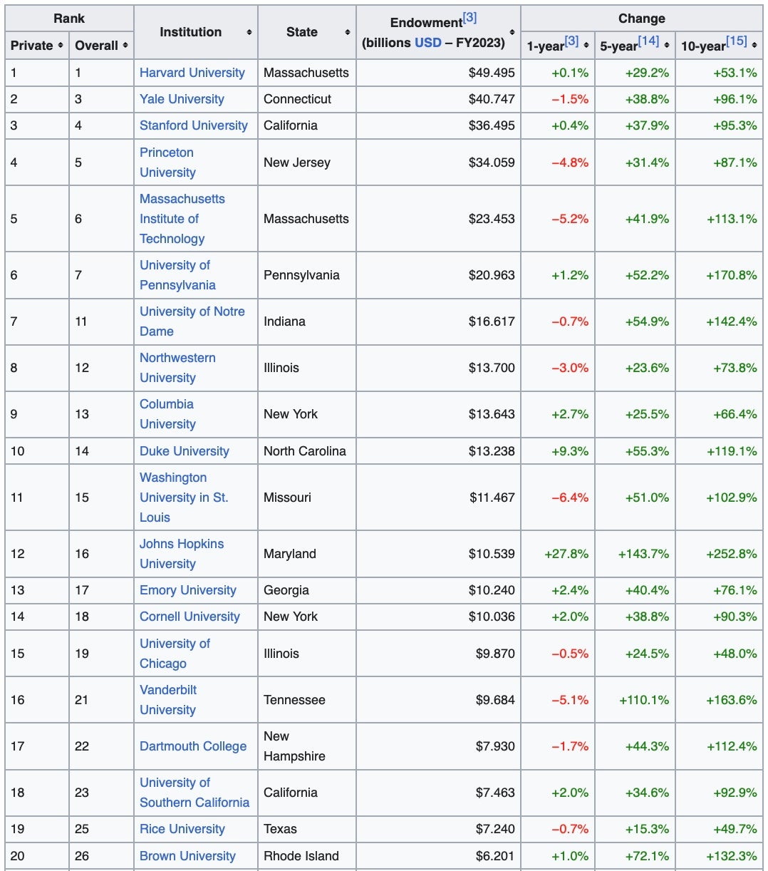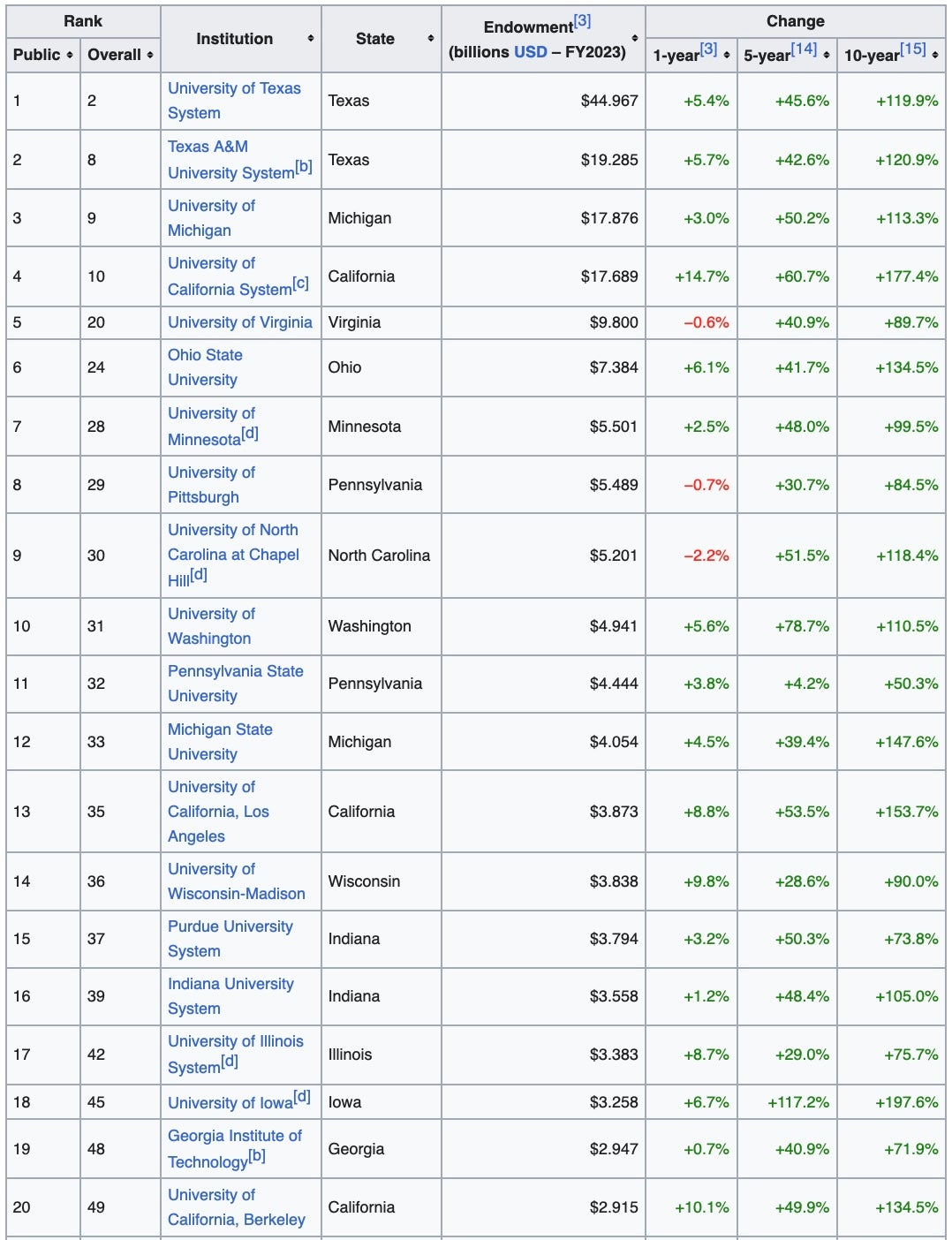 A lot of B1G schools in that top 20. Some ACC as well. Not that Georgia & Alabama aren't large universities with sizable endowments. They both come in right around a respectable $2 billion. Being in the middle of the pack (public school-wise) is nothing to be ashamed about.